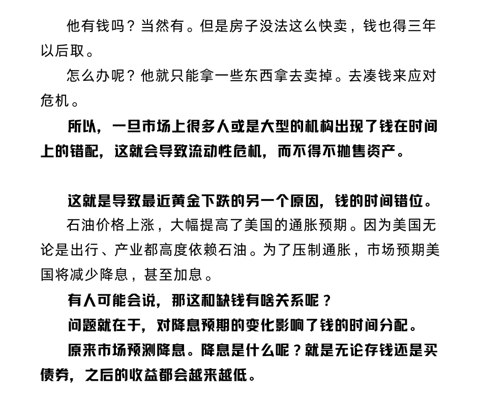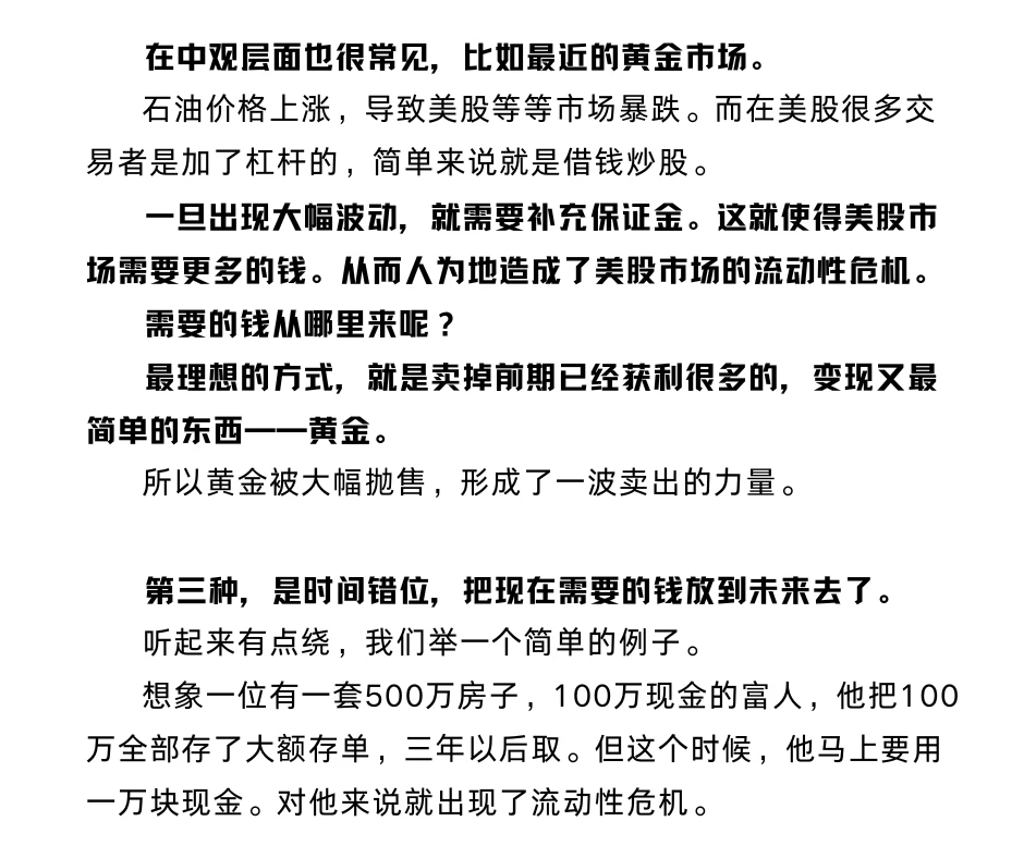 所以,出现了时间的错配,就会导致危机,而不得不抛售资产。