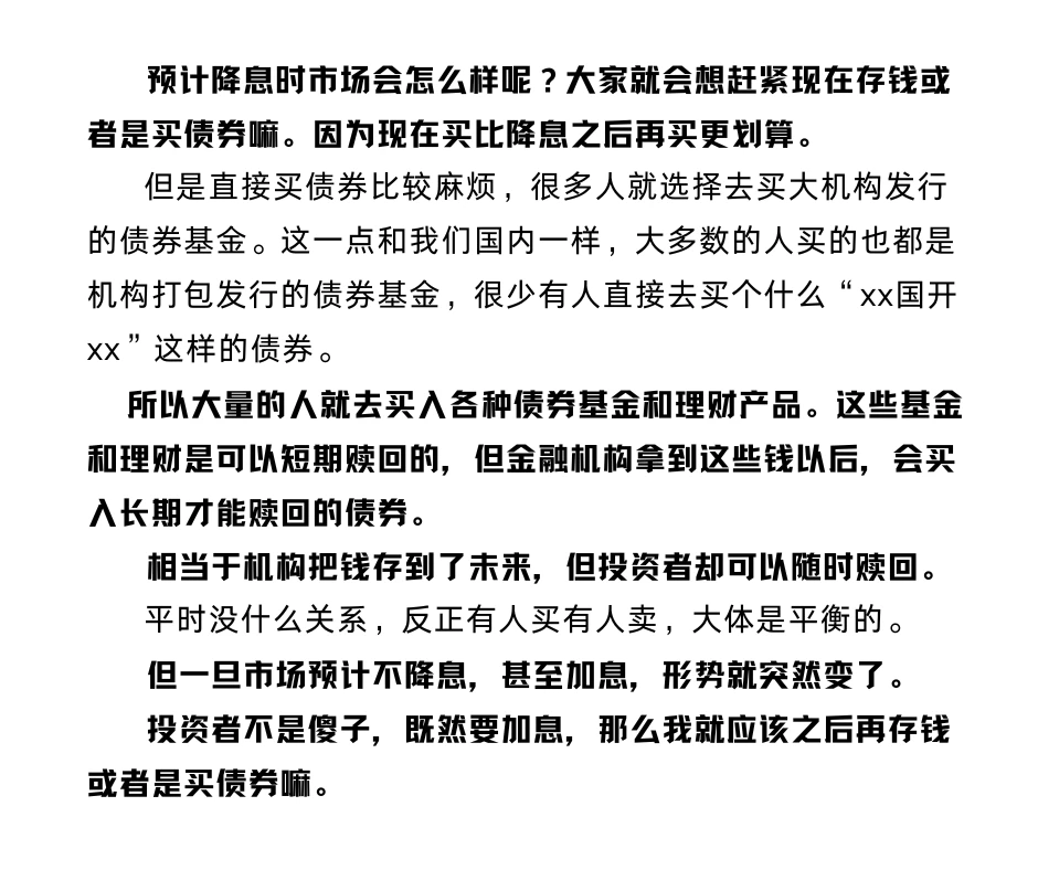 原来预测降息。就是无论存钱还是买债券,之后的收益都会更低。