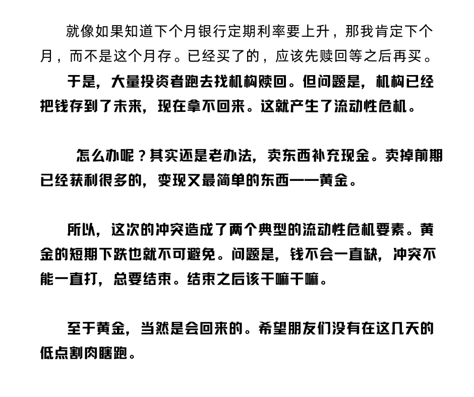 怎么办呢?卖掉获利很多的,变现最简单——黄金。