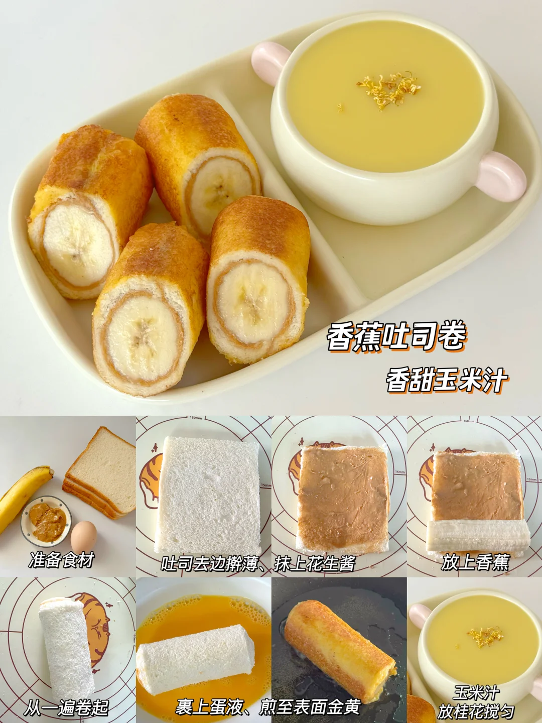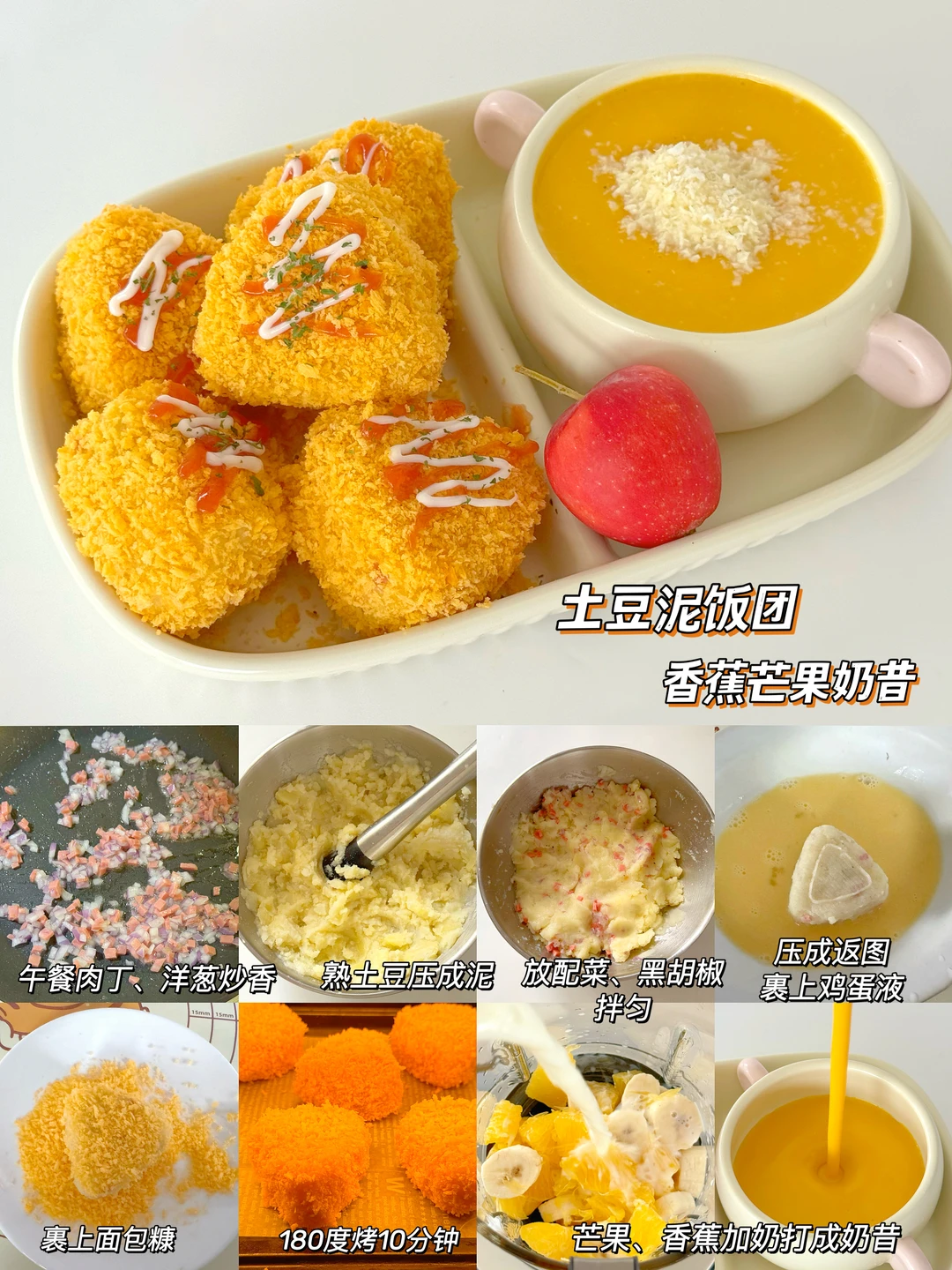 🌈还在为小盆友早餐吃什么发愁吗,适合小朋友的快手早餐来了,简单营养,美味可口,饭渣宝宝也会轻松光盘 ✅土豆泥饭团➕香蕉芒果奶昔 ✅ 蒜香黄油吐司➕奶油蘑菇浓汤 ✅牛排蔬菜沙拉➕酸奶谷物碗 ✅脆皮锅贴➕蔬菜瘦肉粥 ✅黄瓜鸡蛋卷➕番茄菌菇汤 ✅葱花鸡蛋饼➕紫菜馄饨碗 ️✅肉末葱花卷➕南瓜小圆子 ✅拇指生煎包➕玉米冬瓜汤 ✅奶香厚吐司➕玉米燕麦粥 ✅奶香小排包➕香芋小圆子 ✅葱花鸡蛋饼➕紫菜馄饨汤 ✅香蕉吐司卷➕香甜玉米汁 详细做法可以参考图片哦