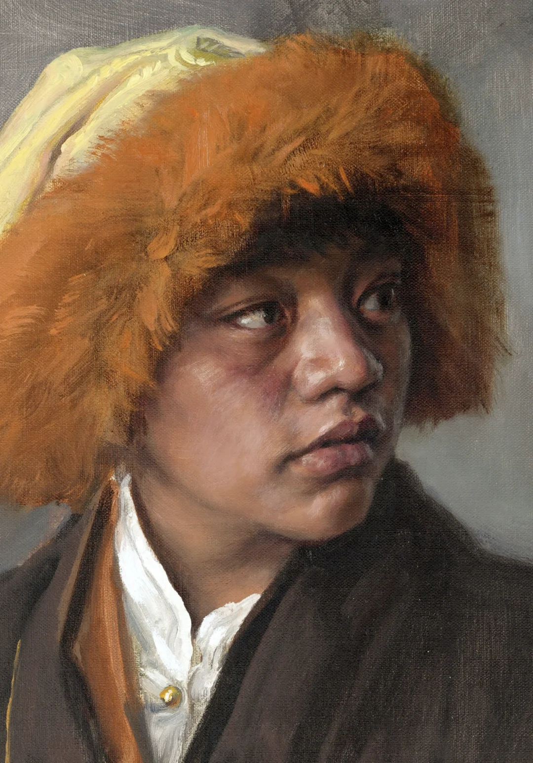 直到妻子收到后,小心揭开保鲜膜:幸好只有衣服暗部粘连磨损比较明显,白领子和帽子的厚色也被压平了。从东北回到家里,我第一时间为它补笔润色,这才慢慢恢复成写生时的模样。