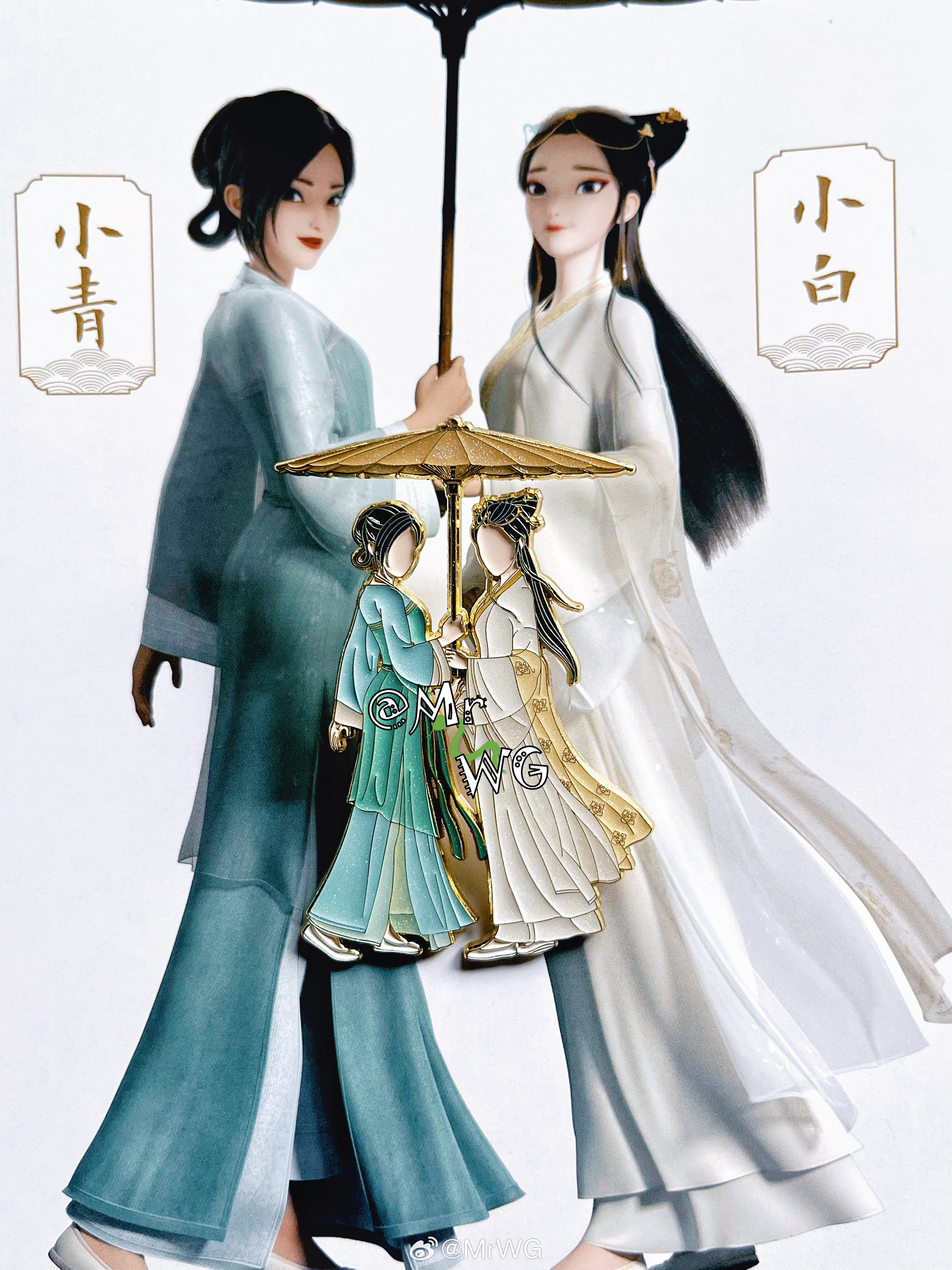 电影周边 收完王祖贤的白蛇吧唧,继续开始入手追光动画的青白金属徽章💚🤍MrWG'sPlog ——【白蛇:缘起】小青飞旋接住小白的名场面,【白蛇:浮生】姐妹雨中断桥共伞,以及致敬赵雅芝、陈美琪的西湖初遇许仙扮相~📸 徽章造型都很还原影片,白蛇水漫金山的披风咯哦好美,很有王祖贤版的味道;