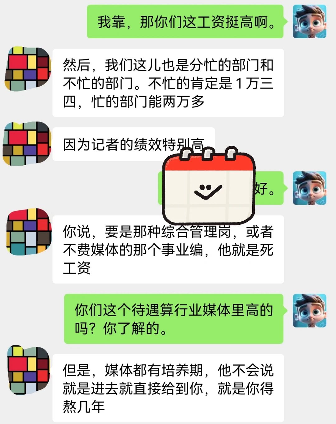 真心的,带编和不带编真的是两个体系,大部分北京地区的媒体单位(央媒、行业媒体),校招进去转正之后,起码有一万多的水平,加上绩效真能干到一万多了,在当今这个市场上真的很好了。 个别行业可能有特殊性,评论区各位媒体前辈可指正