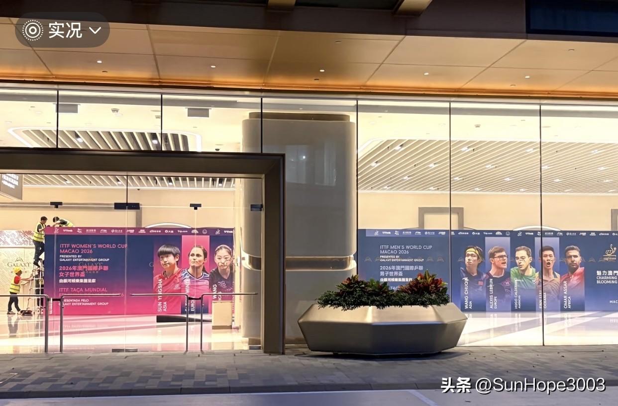 澳门世界杯现场实况,国乒将在27号出发去澳门。 澳门世界杯在3月30日开赛,明天各协会将开始赶往澳门, 国乒也将在明天下午从成都出发,去澳门参加世界杯的比赛。 今天晚上世界杯现场的海报已经安装完毕, 孙颖莎,王楚钦分别领衔男女单打, 在海报的第一位, 当然他们两个也是最受关注,热度最高的球员。 随着他们的出发,球迷们也将在28,29号开始去往澳门了。 期待精彩的比赛,一切顺利哦。