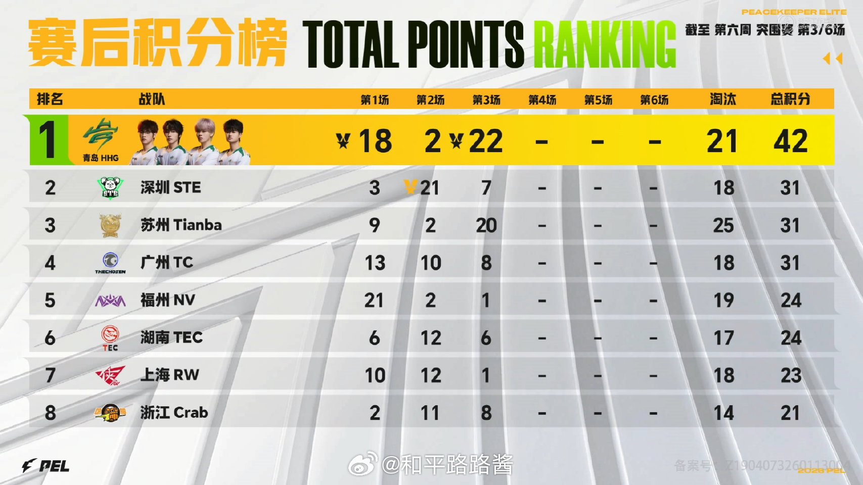 【2026 PEL 春季赛】Week6 Day1 第三场 HHG单日两鸡HHG荣