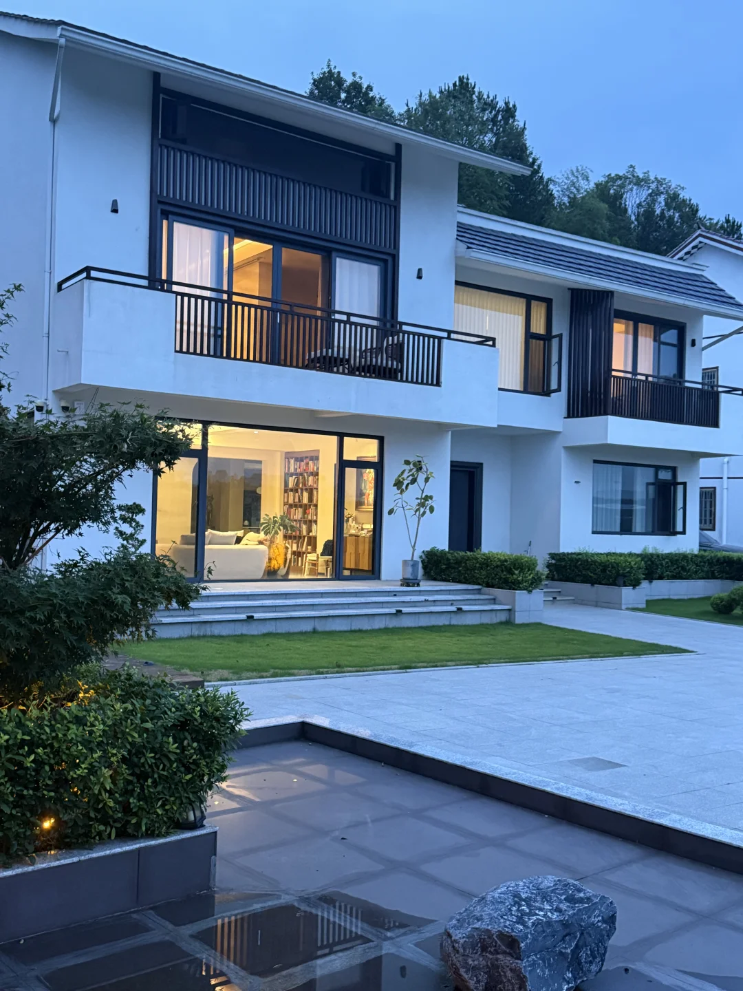 ✅庭院地面贴砖、水景、平台、围墙、大门约20W左右