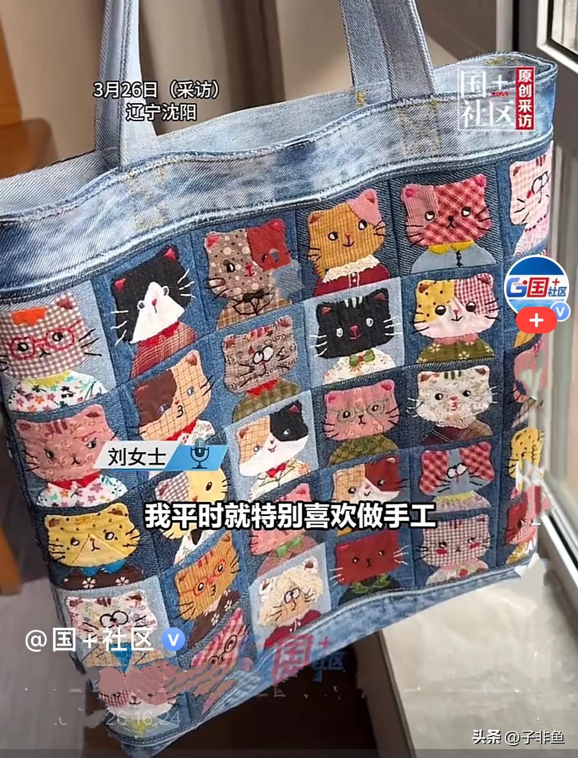 辽宁沈阳的刘女士平时就特别喜欢做手工,好像是开什么店的吧,视频中都是玩具,玩偶,手工什么的…… 近日她用牛仔裤改造的猫咪拼布包,花了一个多月的时间做完了,太漂亮了,刘女士应该在哪儿看过类似的包,她说她喜欢这个包都喜欢两年了,终于自己动手做出来了、好高兴,现在我们都喜欢,大家都问怎么做、怎么卖,刘女士说她不卖,以后出个教程教大家,太好了……