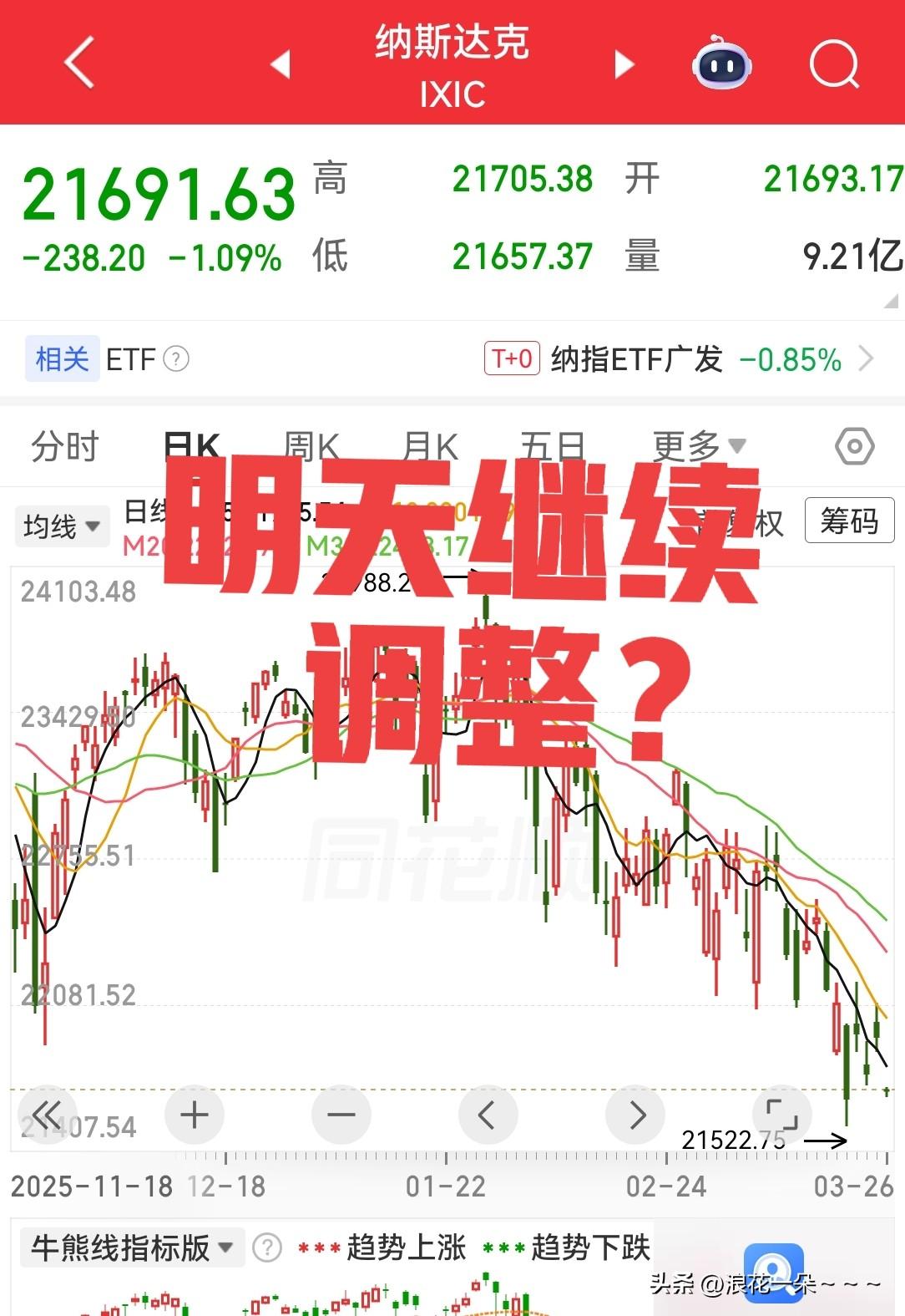 夜已深,都洗洗上床睡觉了吗?看看美股开盘情况,感觉明天A股又是很艰难的一天呢?因为今天晚上美股三大指数又是低开,这已经连续多少天低开了,低开主要是美股科技股不争气啊,几大巨头全部下跌,可以看出美股科技股继续在调整之中。 不知道明天A股会怎么走?现在心里真没有底呢,又担心A股跟随美股走,又担心A股会走出一个相反的行情,就像周三一样,那就看看明天港股怎么走吧?包括日本和韩国股市如何走? 反正今天晚上美股收阴的话,我认为明天A股低开又是一定的了。希望明天来个金针探底吧!我知道大家盼涨心切,都不愿意看空,只想着看多。加油,熬过这个艰难期,曙光就会到来。[捂脸]