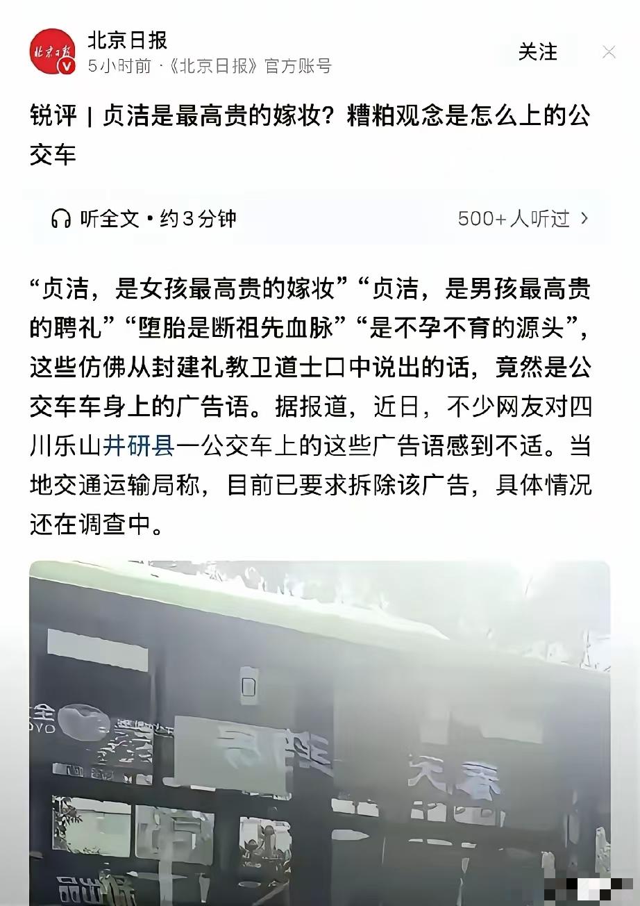 那些没有贞洁可言的人,最讨厌大家讨论贞洁,揭他们的短!百姓心中自有公道,公交司机守规矩,理应得到公正对待。 传统美德怎么会是错的呢?反对的人才是有问题。 难道不对吗?浅显而清晰的道理,只是好多人装死不愿意接受而已。 广大网友又被代表了吗?我看是支持这个的居多啊。如果这个广告撤下了,还要做处理,那就真的是邪压正了。 就两条:1.哪个企业投放的广告 2.哪些人群会感到不适。 这几句话只是直白一点,但并没有错,不必要上岗上线。这个是哪个产品的广告?这就是道德品质,是中华民族几千年的传统美德。