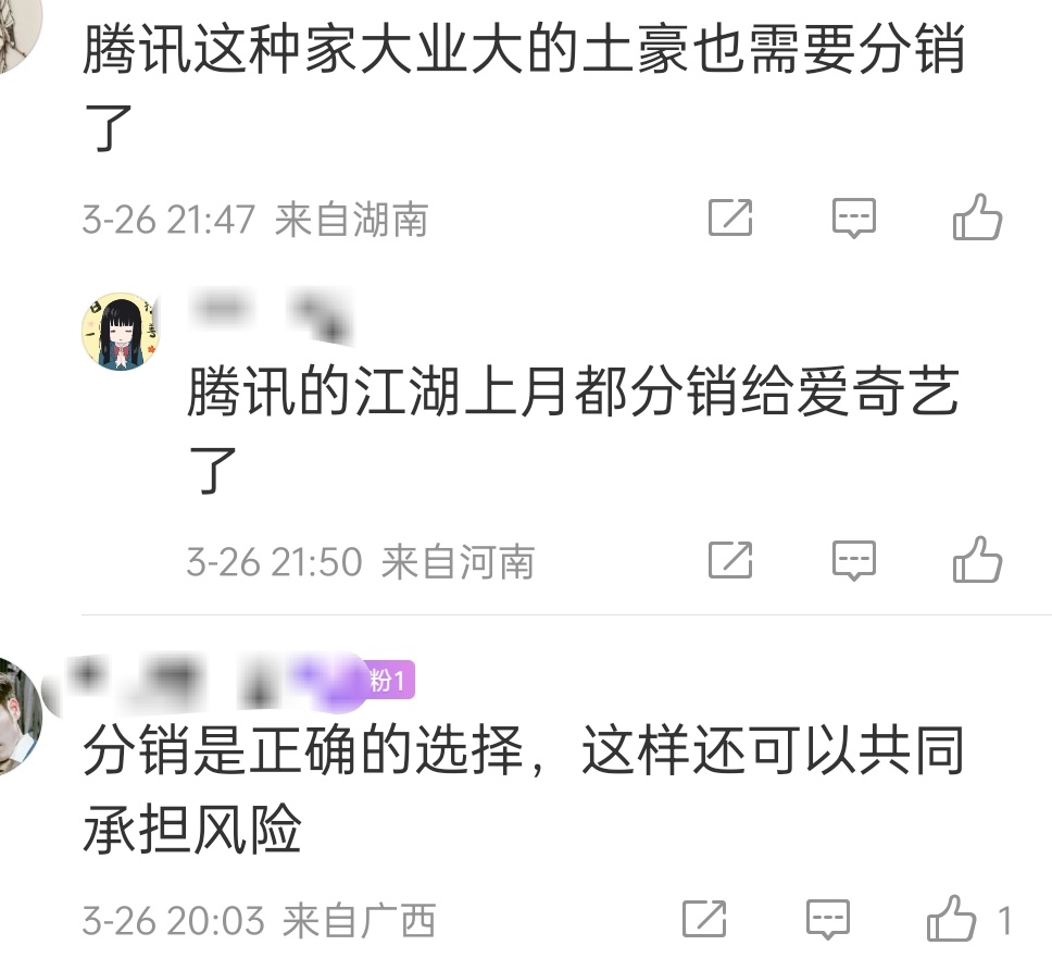估计今年还有很多剧要分销平台的喽,影视寒冬,鹅桃抱团取暖