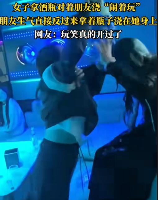 这种不是朋友!哪有朋友是这么玩的? 一女子拿酒瓶往朋友身上浇,还美其名曰“闹