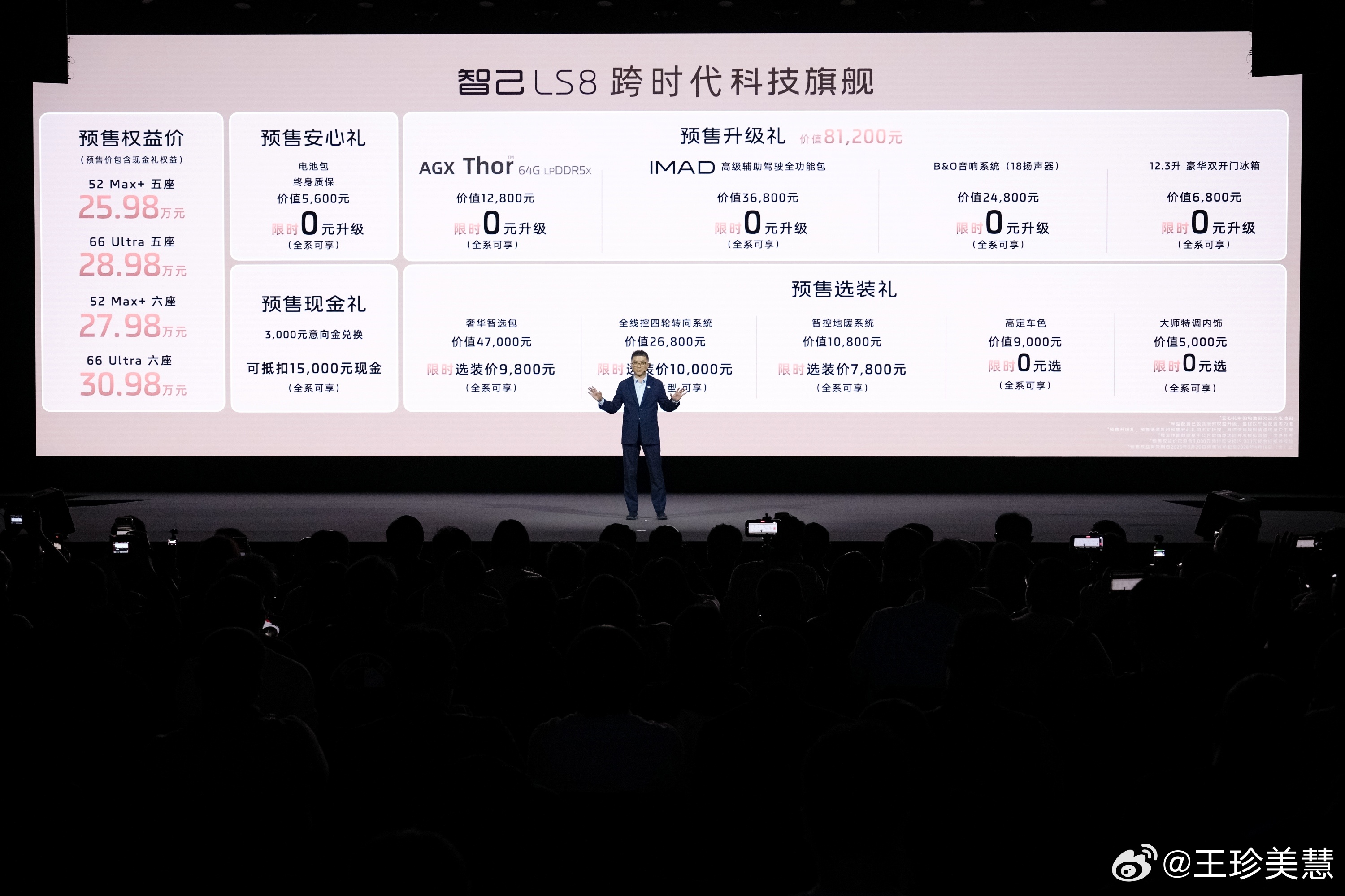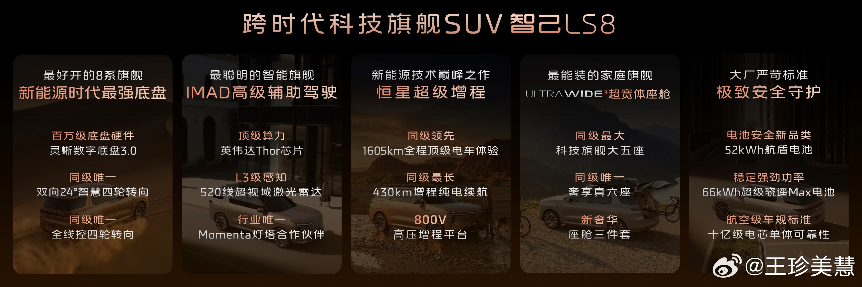 25.98万起,智己LS8这次预售直接把“科技旗舰”的门槛打下来了!!!这车最核心的干货在于全系标配灵蜥数字底盘3.0和全线控四轮转向,5米长的车身转弯半径仅4.85米!动力上搭载1.5T恒星超级增程系统,四驱版综合功率390kW,零百加速4秒级~~CLTC纯电续航最高430km,综合续航1605km,支持800V快充,12分钟即可将电量从30%充至80%!智能化上配备了520线激光雷达和英伟达Thor芯片,首搭千问大模型,就想问问还有谁能这么硬核!!!智己LS8震撼预售25.98万元起