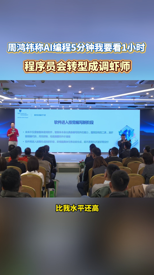 周鸿祎称AI编程5分钟我要看1小时技术浪潮下写码不再是核心,程序员变身AI协作伙伴,负责校验与方向,职业价值迎来全新提升周鸿祎称程序员会转型成调虾师