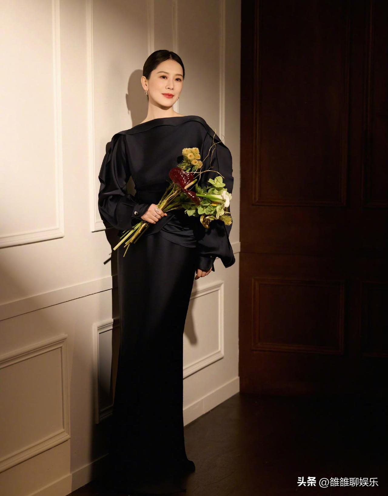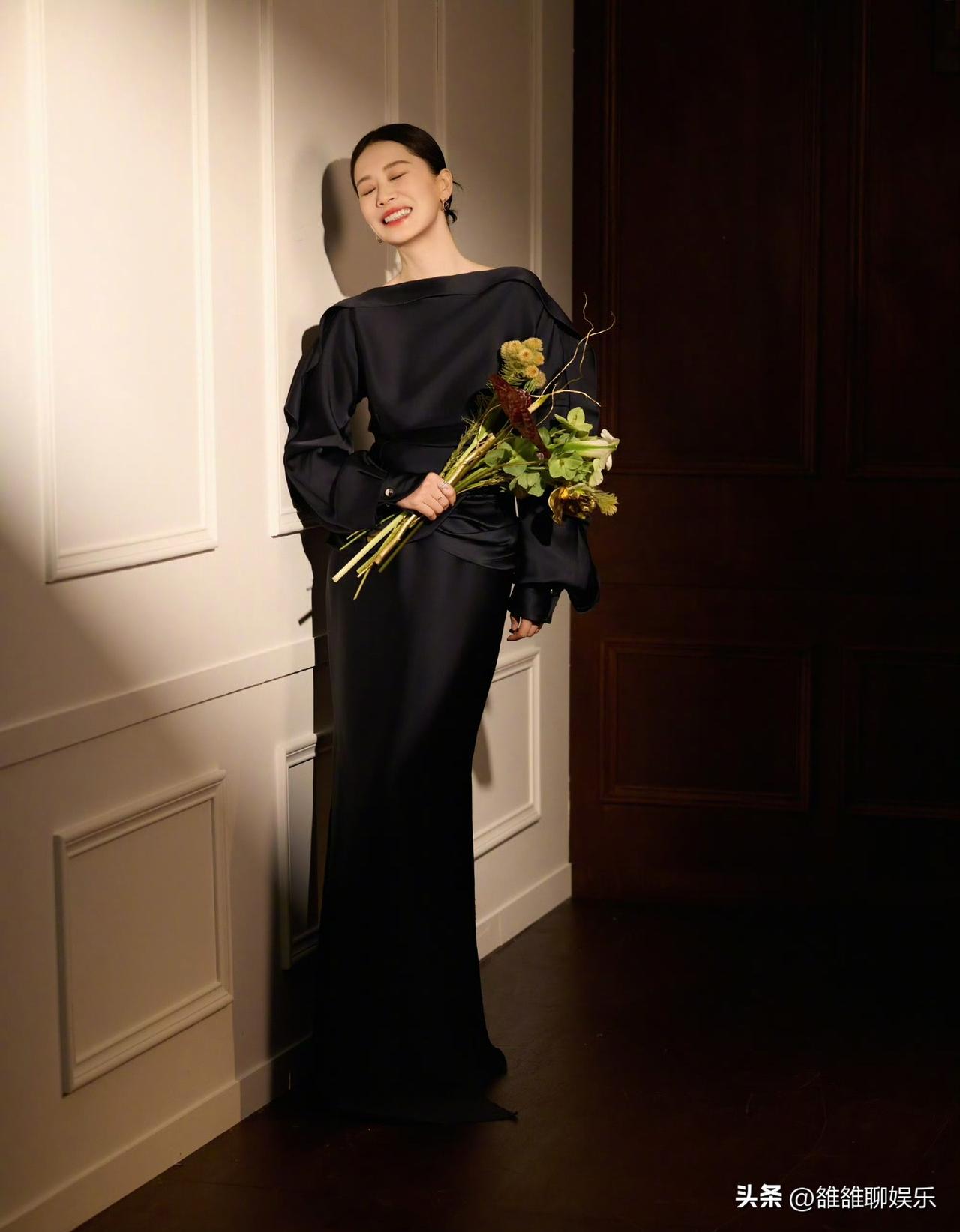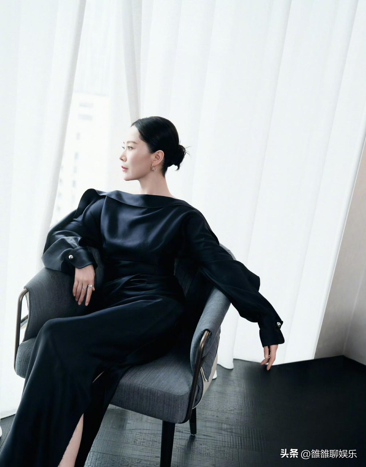 海清,冲上热搜。 3月26日,好久不见的海清在社交平台发布一条动态,配文简单,但九宫格照片很有质感。 照片中她穿着一袭黑色缎面长裙,一字肩设计很好的凸显出流畅的肩颈线,灯笼袖并不显臃肿,反而衬得她更加柔美,低盘发干净利落,妆容清淡却不失优雅,眉眼间透露出岁月静好的淡然,将成熟女性的优雅与干练体现的淋漓尽致。 海清时而站立于光影斑驳的墙边,时而慵懒的倚靠在沙发上,从不同角度看她,每一帧都透露出松弛与自在。 网友纷纷留言:海清这状态也太绝了,干花配黑裙,既充满古风又充满文艺,太喜欢这样的造型了。 出道多年,海清几乎很少录综艺节目,走的也是低调路线,她一直用作品说话,好的角色就是她的底气,在戏里打磨自己,在生活中放松舒展,这才是一个好演员该有的样子。