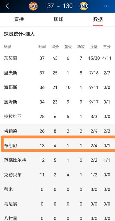 湖人新星布朗尼终于又被重用了!在今天湖人客场以137:130战胜步行者的比赛中,小将布朗尼再次进入到了球队的轮换阵容里,并且在攻防两端都有不俗的表现。