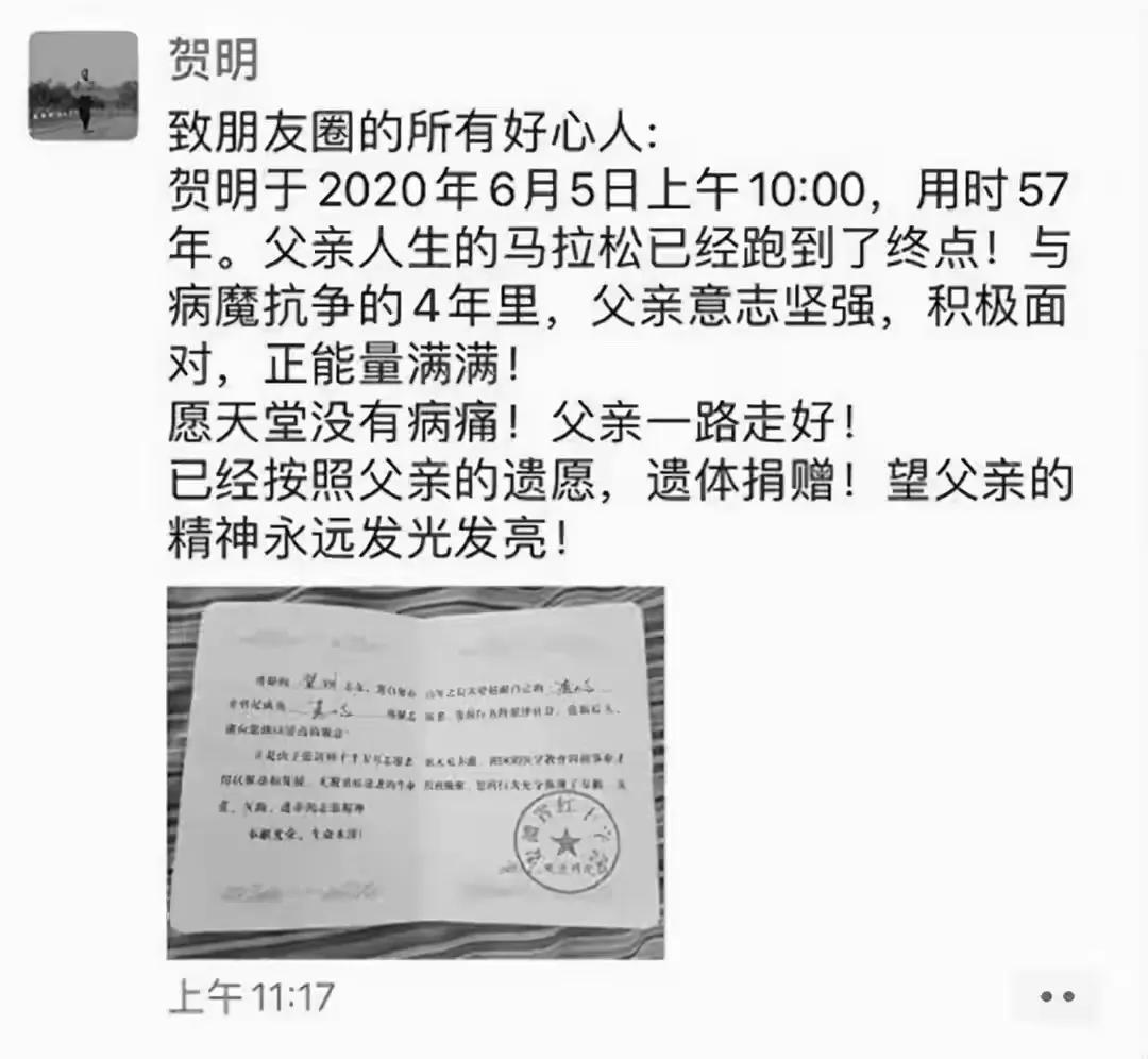 2016年,53岁的安徽男子被确诊为肺癌晚期,医生说手术根本没有任何作用,最多能活三个月。然而,他却不听医嘱,想要“逆天改命”!顽强忍着病痛,竟足足跑了61场马拉松。 (信息来源:中国网——癌症患者4年跑了61场马拉松 去世后儿子接力要帮父亲完成“百马梦”) 2016年,当53岁的安徽淮南人贺明,从医生口中听到“肺癌晚期,预计还有三个月”的判决时,他或许并未想到,自己接下来的选择会将一段走向终点的生命,变成一场与死神赛跑的、长达四年的漫长马拉松。 一向身体硬朗、热爱运动的贺明,在一次体检中被确诊。 随之而来的是33次化疗的折磨,药物在攻击癌细胞的同时,也几乎摧毁了他。 他形容自己瘦得“只剩下一把骨头”,头发掉光,精神在无尽的呕吐与虚弱中滑向谷底。 更令他窒息的是那种“等待死亡”的被动感。 躺在病床上,听着妻子为筹措医疗费用低声打电话,他感到生命最后的尊严正在流逝。 他决定“叛逃”不是逃离治疗,而是逃离那种被病痛完全定义、在病床上静候终结的生存状态。 他告诉家人:“不治了,我要回家跑步去。” 这个决定在家人和医生看来,无异于自杀。 对贺明而言,跑步不是自毁,而是自救,是夺回对身体和生命最后控制权的庄严仪式。 起初的“跑步”甚至称不上跑,只是扶着墙艰难挪步,几百米就喘得如同破旧风箱。 但每一步踏在地上,都让他感到自己仍在“使用”这副残破的躯体,而非仅仅“承载”痛苦。 从踉跄行走,到慢跑一公里,他的身体在抗拒,但精神却奇异地焕发。 他感觉呼吸似乎顺畅了些,咳嗽也有所减轻。 这微小的正向反馈,成了他黑暗中的一束光。 他为自己设定了一个看似不可能的目标:跑完100场马拉松。 这并非出于虚荣,而是一个将虚无的“剩余时间”转化为具体、可丈量的“剩余路程”的智慧。 当生命以“天”倒数令人绝望时,他以“公里”和“场次”来计数,重新搭建了活下去的意义框架。 于是,一场史诗般的个人抗争在各大马拉松赛道上展开。 贺明的奔跑,与健康跑者的享受截然不同。 那是掺杂着剧痛的每一次抬腿。 癌细胞已转移到骨骼,奔跑的震动如同持续的电击。 他会在赛道上突然咳出血痰,然后默默咽下,不想让家人和志愿者担心。 疼痛到无法忍受时,他会把胸前的号码布塞进嘴里死死咬住,用另一种痛感来转移注意力。 2019年郑开马拉松,他在30公里处右腿完全失去知觉,竟然靠着单腿跳和顽强的意志,挪完了剩下的十二公里。 冲过终点时,他的小腿已肿成紫色。 这些场景并非励志鸡汤,而是一个人与自身极限及命运进行的、近乎残酷的肉搏。 他说:“什么时候死,是天定。但怎么死,是我自己选。” 奔跑,成了他选择的有尊严的、主动的“活法”,哪怕每一步都踩在刀尖上。 这场孤独的战役,逐渐赢得了世界的敬意。 从偷偷伪造信息参加第一场马拉松,到后来成为赛道上知名的“抗癌跑者”,沿途的跑友和志愿者会为他鼓掌,陪他一段,在终点线为他久久守候。 贺明的故事经媒体报道,激励了无数陷入困境的人。 他证明了,绝境中的人依然拥有选择的自由,可以选择以何种姿态面对注定的结局。 2017年至2020年,贺明完成了61场全程马拉松,将医生预估的三个月,极大地延长了四年。 2020年6月,他安然离世。 在生命终点,他签署了遗体捐献协议,他的眼角膜为两位陌生人带去了光明,完成了生命最后的馈赠。 贺明并未创造医学奇迹战胜癌症,但他创造了生命的“叙事奇迹”。 他打破了“病人”只能被动、虚弱、等待的刻板角色,用奔跑将自己重新定义为一个“行动者”、“挑战者”。 他的马拉松,本质上是一场关于生命自主权的漫长游行。 更令人动容的是,他离世后,儿子贺帅接过了他的号码布,立志要替父亲跑完剩下的39场马拉松,将一个人的抗争,升华为一个家庭乃至一种精神的传承。 因此,贺明留给世界的,不仅是61场马拉松的数字,更是一种面对终极困境时的哲学:当无法决定生命的长度,我们依然可以决定它的宽度、密度与态度。 他用燃烧般的最后四年告诉我们,真正的活着,不在于呼吸的持续,而在于直至最后一刻,都紧紧攥住自己生命叙事的那支笔。
