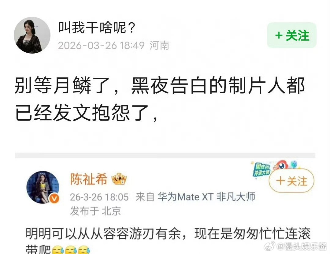王鹤棣《黑夜告白》制片人发文表示,月鳞绮纪撤档后黑夜告白临时提档,打乱了计划