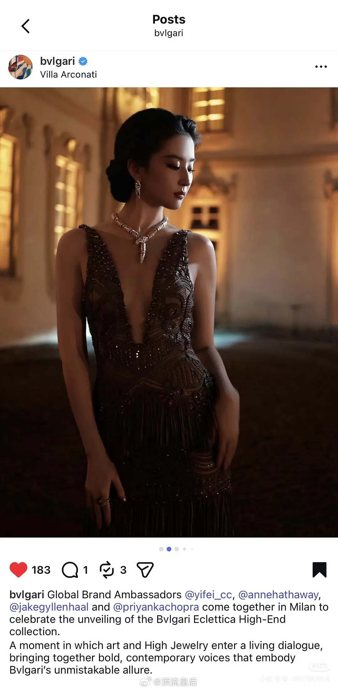 不得不夸赞宝格丽官摄镜头抓住了复古名伶的精髓,把刘亦菲拍的很有韵味,比生图好很多。