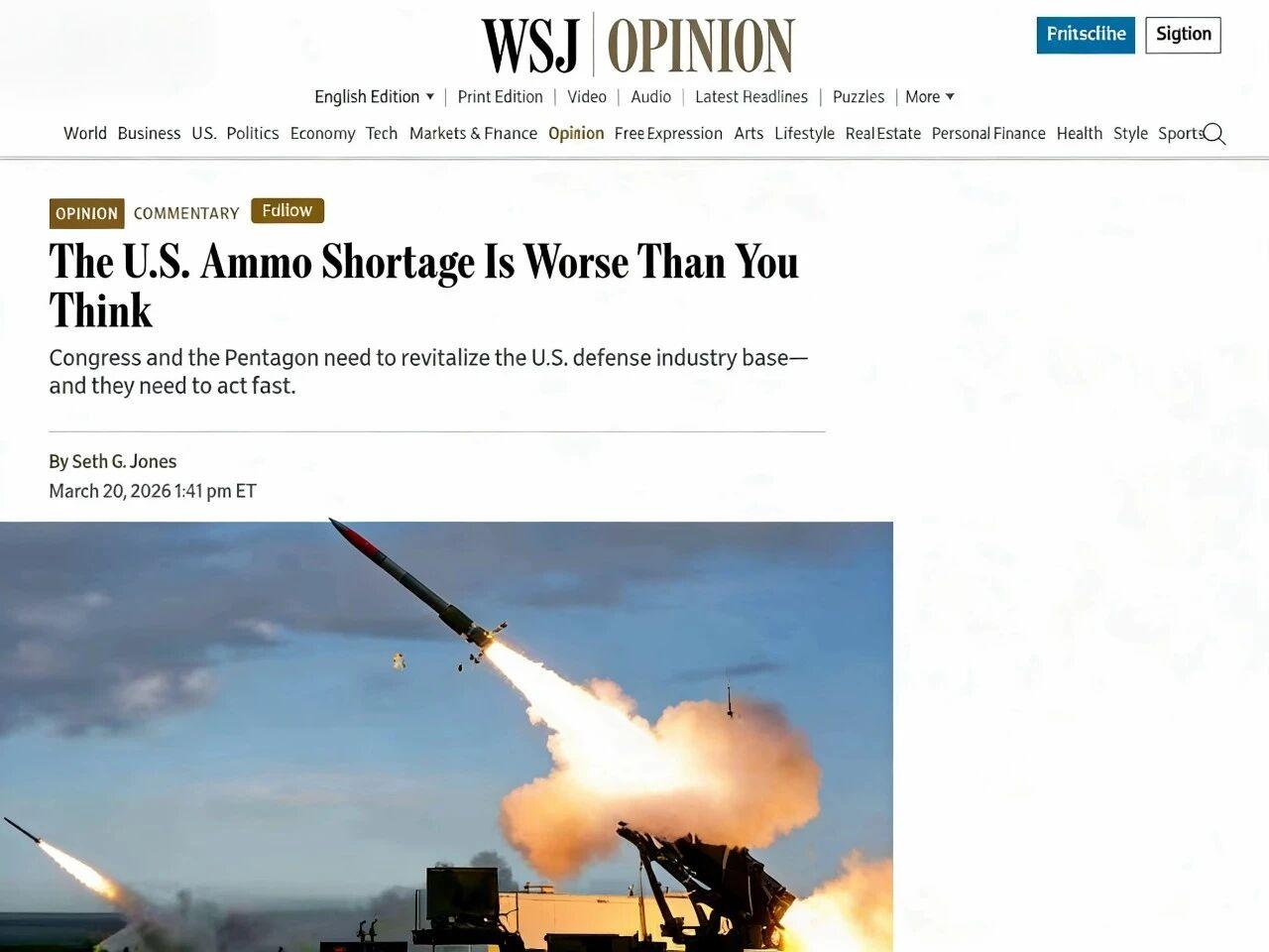 《华尔街日报》|美国的弹药短缺比你想象的更严重