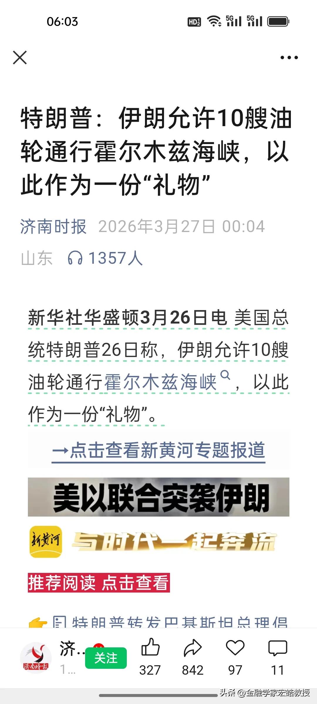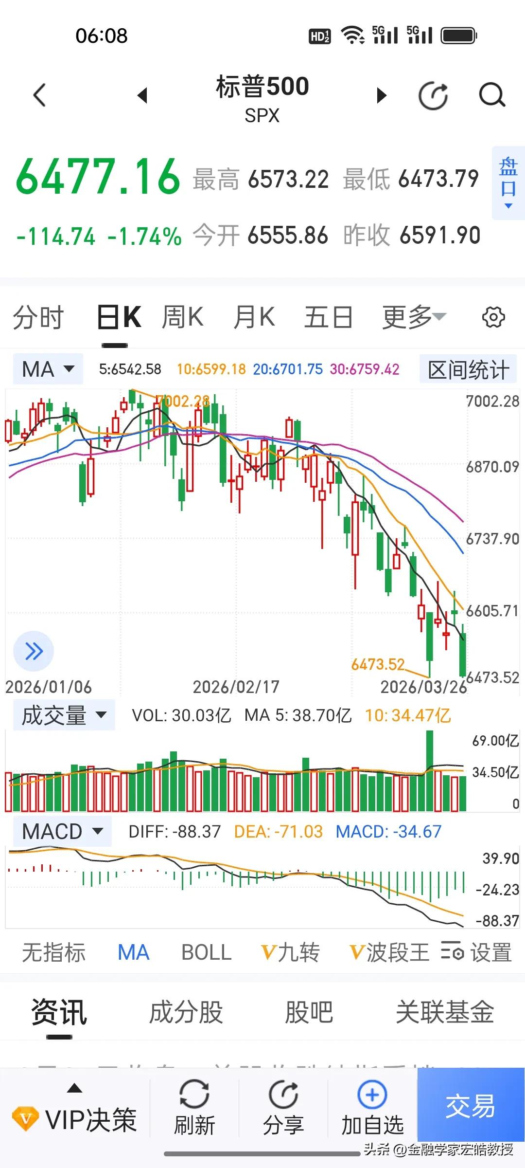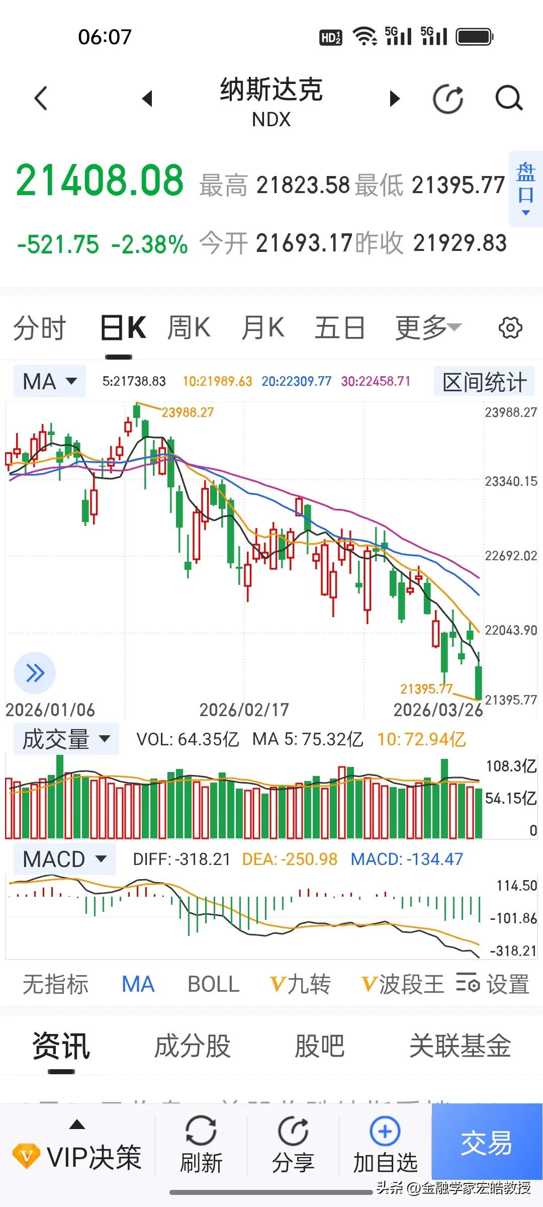 推迟再推迟,总共推迟15天!特朗普又发话救美国股市了!刚刚,美股收盘,又是血雨腥风的一天,三大股指继续创今年以来新低,纳斯达克跌幅最大,AI泡沫破裂近在咫尺,三大股指从最高点到目前已经下挫10%,显然特朗普感到了各方压力,再度放话,对伊朗能源设施打击再推迟10天,一直到4月6日,特朗普眼下只想尽快结束战争,昨天又再次宣布了访华时间。看看本周末美伊双方会不会在巴基斯坦会谈吧!