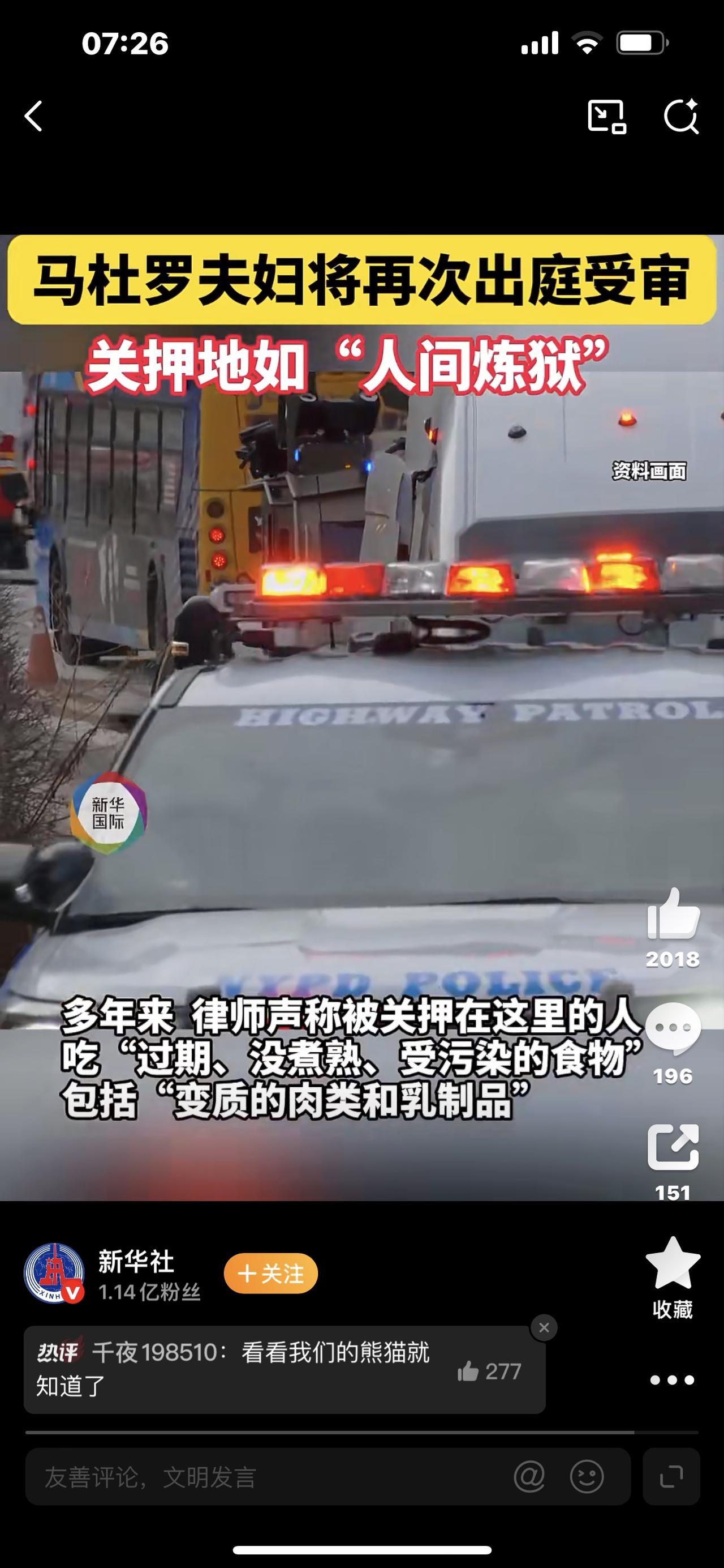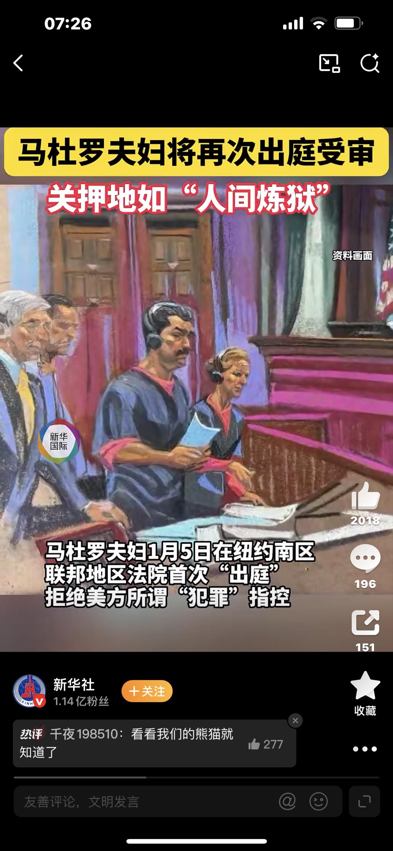 马杜罗夫妇关押地曝光!6平米牢笼、夫妻不能相见,这哪里是监狱,分明是人间炼狱! 你敢信吗?一国前总统,如今被关在6平米的铁笼子里,和妻子近在咫尺,却连面都见不到!吃着带虫子的变质饭,缺医少药、卫生极差,这座号称“文明灯塔”的美国监狱,真面目终于藏不住了! 近日,马杜罗夫妇再次在美国出庭受审,他们被关押的纽约布鲁克林大都会拘留中心,彻底被扒光底裤:官方名字叫“大都会拘留中心”,在全世界被关押者口中,它只有一个称呼——人间炼狱。 谁也没想到,从总统府到冰冷铁窗,落差大到让人窒息。曾经住宽敞宫殿,如今蜷缩在只有一张铁床、一个连体马桶的狭小牢房;曾经有专人照顾饮食,现在吃的是过期、没煮熟、受污染的食物,甚至能在饭里看到虫子。 更残忍的是夫妻分离:两人关在同一座监狱,却被严格隔离,不能见面、不能直接交流,只能隔着高墙遥遥相望,连一句安慰都传不到对方耳边。 这里常年停电停暖,夏天闷热窒息,冬天冻得发抖,厕所经常故障,臭气熏天,斗殴伤人更是家常便饭。多少人权组织、律师多次控诉,可这里依旧恶行不断。 很多人说,这哪里是司法羁押,分明是政治羞辱!所谓的公平审判、人道主义,在强权面前,不过是一句漂亮空话。 一个国家的领导人,被强行掳到异国受审,关在最恶劣的监狱,这不仅是马杜罗夫妇的遭遇,更是对一个国家主权的践踏,对所谓“人权”最辛辣的讽刺。 弱国无外交,落后就要挨打,这道理放在今天,依然血淋淋地真实。看着高墙里的他们,再想想我们安稳的生活,才更明白:国家强大,才是普通人最大的底气! 愿正义早日到来,愿强权不再肆意妄为,愿每个国家都能被尊重,愿每个人都能活在真正的人权与自由之下。