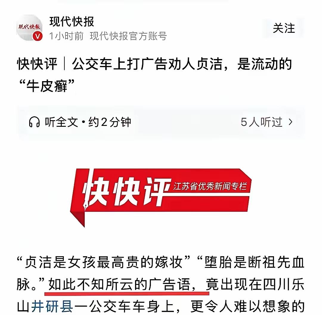 真的越看越气!一句简简单单倡导自尊自爱的公交标语,竟被部分媒体揪着狂批,扣上封建糟粕、流动牛皮癣的帽子,这双标操作简直让人看不懂。 明明完整标语是对男女双方都提出自重自律的要求,却被刻意断章取义,媒体不分青红皂白集体下场批判,火力全开。可反观那些真正该被监督、该被批判的不良现象,这些媒体却集体沉默,半点仗义执笔的样子都没有。 自尊自爱从来不是封建糟粕,这是做人最基本的底线,是对自己、对家庭负责的表现,和文明乘车、尊老爱幼一样,都是再正常不过的价值引导。把自律说成保守,把洁身自好说成落后,混淆是非搅浑价值观,才是真的误导人。 媒体本该守护主流价值,而非挑动对立收割流量。老百姓心里都有杆秤,分得清什么是善意提醒,什么是故意带节奏。 你觉得倡导自尊自爱,到底该不该被批判?