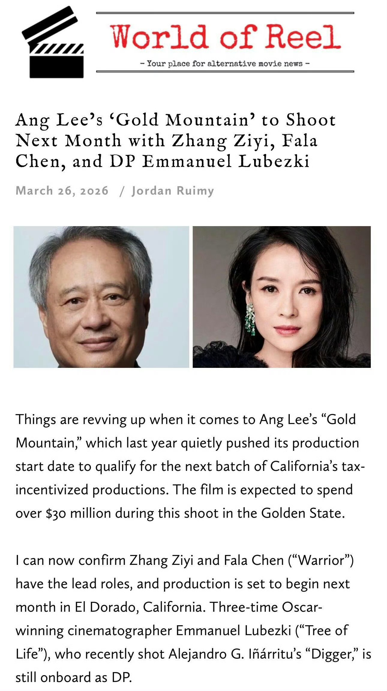 章子怡的大饼,李安拍的描述华人在加州淘金血泪史的电影。现在刚开拍的曹保平的《寻子遗迹》一个月就拍完吗