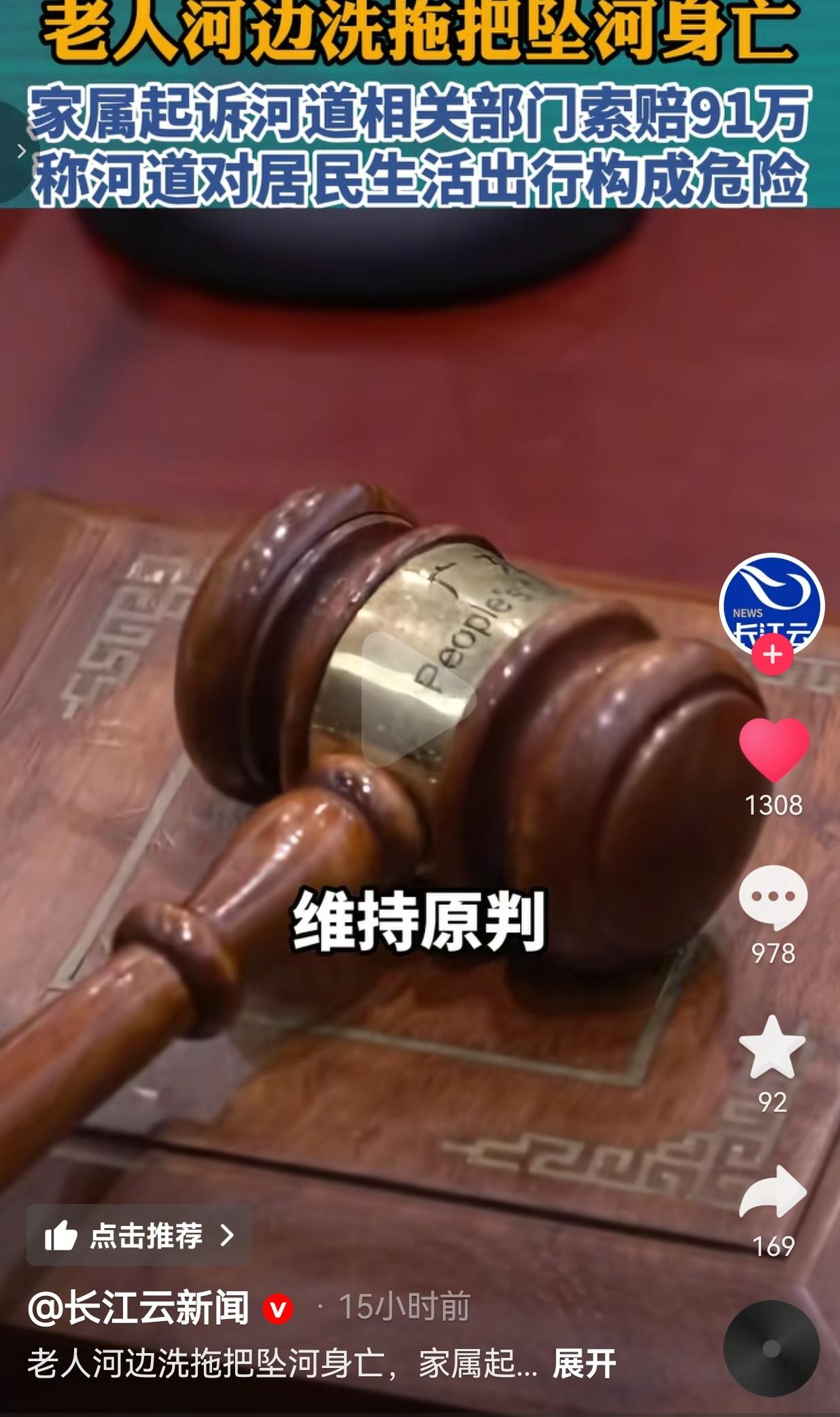 每个成年人都是自己安全的第一负责人!老人自己在河边洗拖把掉河里没了,家属居然把河道部门告上法庭要赔91万,结果一审二审全被驳回,这波法院干得太漂亮了! 下雨天路滑,一位老人根本没有注意到危险,竟然直接拿着拖把到河边洗拖把。结果,脚下一滑直接坠河,最后不幸身亡。 家属悲痛归悲痛,转头就把河道管理部门和街道告了,张口就要91万! 家属给出的理由是:河道就在居民生活区旁边,对大家出行生活构成危险,管理部门没尽到警示义务,必须赔钱! 他们觉得:只要在公共区域出事,就得有人背锅买单,哪怕是老人自己去河边洗拖把这种私事,也得让公家掏钱。 可法院根本不吃这一套:一审直接驳回诉求,明确指出老人作为完全民事行为能力人,自身未尽到审慎的安全注意义务,才是导致其落水并最终死亡的直接原因,这是自身疏忽导致的意外,和管理部门没关系。 家属不服气上诉,二审法院直接维持原判,一分钱都不赔! 网友看到后评论说:“我家楼下也有河,是不是以后我摔一跤也能告河道部门?这钱也太好赚了吧!自己不小心怪别人,脸都不要了!” 也有的网友说:“91万!这是把老人的不幸当成发财机会了吧?真要是同情老人,就该好好料理后事,而不是盯着钱袋子!” 还有的网友说:“法院判得对!成年人要为自己的行为负责,不能一出事就“谁弱谁有理”,这才是法治社会该有的样子!” 也有的网友说:“以后谁敢在河边洗衣服?是不是都得先找管理部门签个“生死状”?这种歪风邪气必须刹住!” 老人因意外去世,谁都心疼,可家属这波操作,简直是把“碰瓷”写在脸上了! 河道是公共区域,不是你家的私人保姆,凭什么要为你自己的疏忽买单?难道以后走路摔一跤,还要告路政部门没把路铺成棉花?喝水呛到了,还要告自来水公司? 这种“谁出事谁有理”的歪风,早就该治治了! 管理部门有责任维护公共设施,但没有义务替成年人的“作死行为”兜底!老人自己去河边洗拖把,本身就存在安全隐患,下雨天路滑本来就是常识,这都要怪别人,那以后谁还敢搞公共建设? 法院两次驳回,就是在告诉所有人:别想拿悲剧当筹码,别想靠撒泼耍赖发财!成年人的世界,从来没有“我弱我有理”,只有“我错我负责”! 最后,我想说的是:别拿不幸当筹码,成年人的锅,自己背! 信息来源:长江云新闻