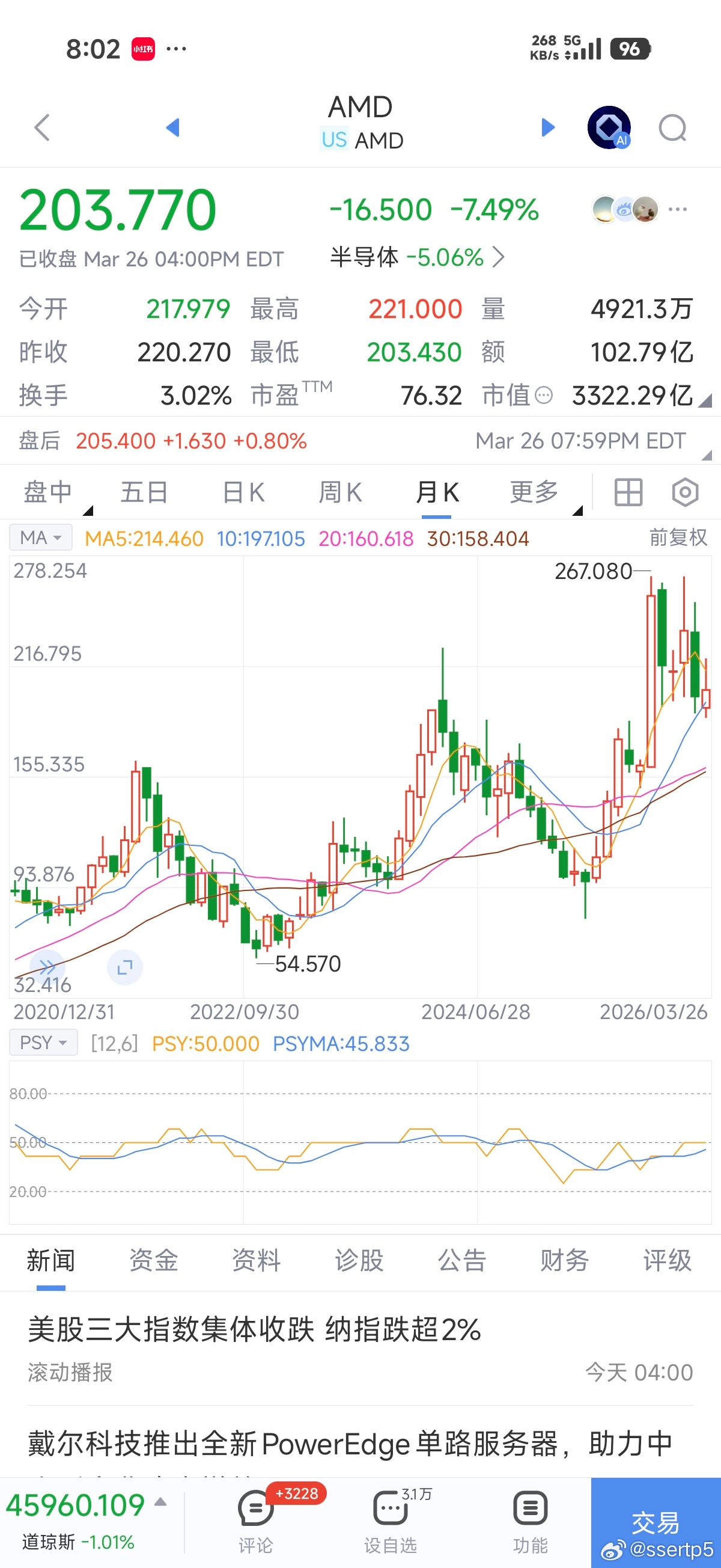 AMD英特尔股价大涨然后立马大跌是吧。