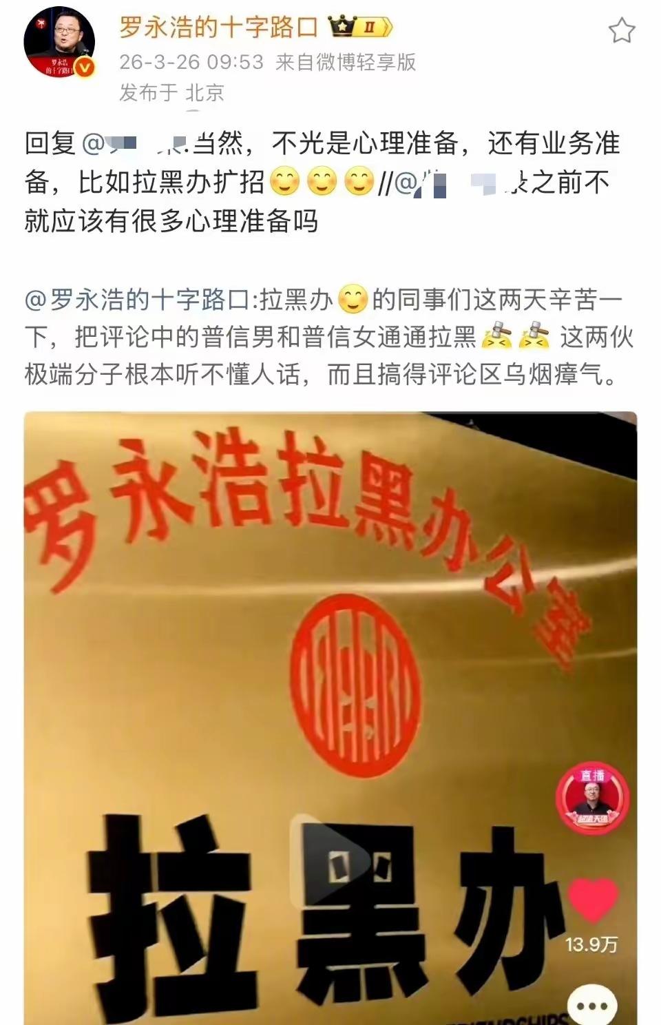 凝视深渊者,深渊报之以凝视[吃瓜群众]大概罗永浩🆚贾国龙,赢得太轻松了,罗大佐有点嘚瑟🉐过来头,如今也自以为可以跟网民的“集体意志”争长短,甚至公开扩招“拉黑办”…[思考]虽说有争议才有流量,但玩这么大?不怕要走老贾的“老路”吗[what]