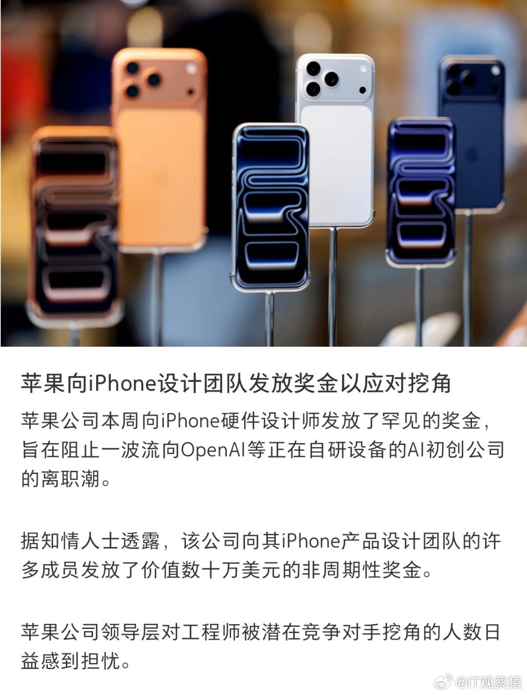 苹果罕见重金奖励iPhone设计团队不靠爱发电,拿钱留人。之前苹果设计主管艾伦·