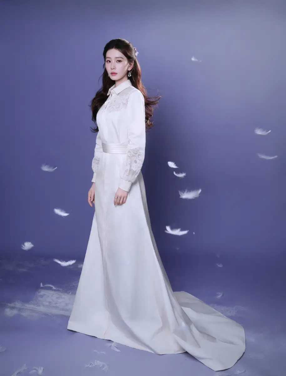 刘诗诗穿纯白蕾丝刺绣裙优雅迷人!秒变清冷感美女