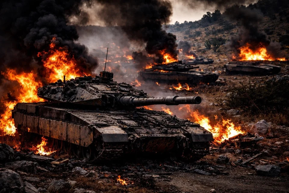 诱敌深入+围点打援 真主党宣称在边境地区摧毁了多达20辆以军重型装甲车辆,这其中包括18辆梅卡瓦主战坦克和2辆D9军用推土机。这是一场“教科书级别”的伏击战。🔻黎巴嫩南部泰贝-坎塔拉一线,当鱿鱼车辆全部进入伏击区后,真主党武装人员立刻发动攻击,先用制导导弹击中由4辆梅卡瓦坦克和1辆D9推土机组成的中部部队,这一波直接带走了5辆重型装备。🔻鱿鱼后方的4辆梅卡瓦坦克试图施放烟幕掩护并撤离时,真主党武装的导弹再次袭来,它们全部被精确制导导弹击中,不久便丧失了战斗力。🔻试图继续向坎塔拉入口推进的先头部队也遭到了导弹的直接袭击,2辆梅卡瓦和1辆D9推土机被摧毁,剩余的以军士兵被迫放弃车辆,徒步向迈西巴特方向撤退,连伤员都扔下不管了。——这就是网传鱿鱼士兵哭着逃跑的视频!🔻当鱿鱼试图派出部队回收被击毁的坦克撤离伤员时,真主党动用FPV、火箭弹和制导导弹的混合对鱿鱼救援部队进行二次打击。加上两天前在泰贝-代尔塞里扬伏击中摧毁的8辆梅卡瓦,短短48h内,以军已损失了18辆坦克,相当于一个装甲营的核心战力直接损失。陆战场的传统步坦战术在FPV面前真的不堪一击,变革已刻不容缓…