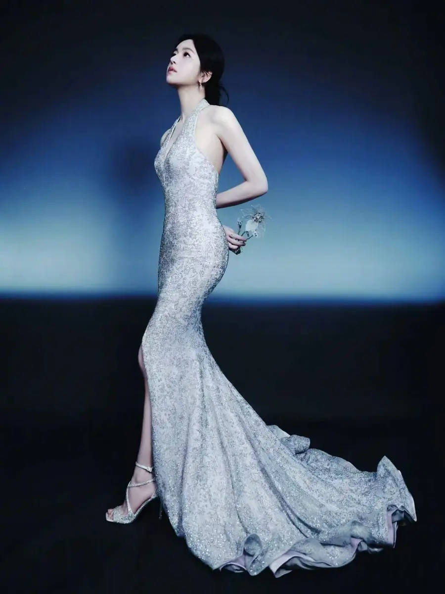 陈妍希穿闪钻挂脖人鱼裙冷艳优雅 高开叉设计勾勒曼妙身姿
