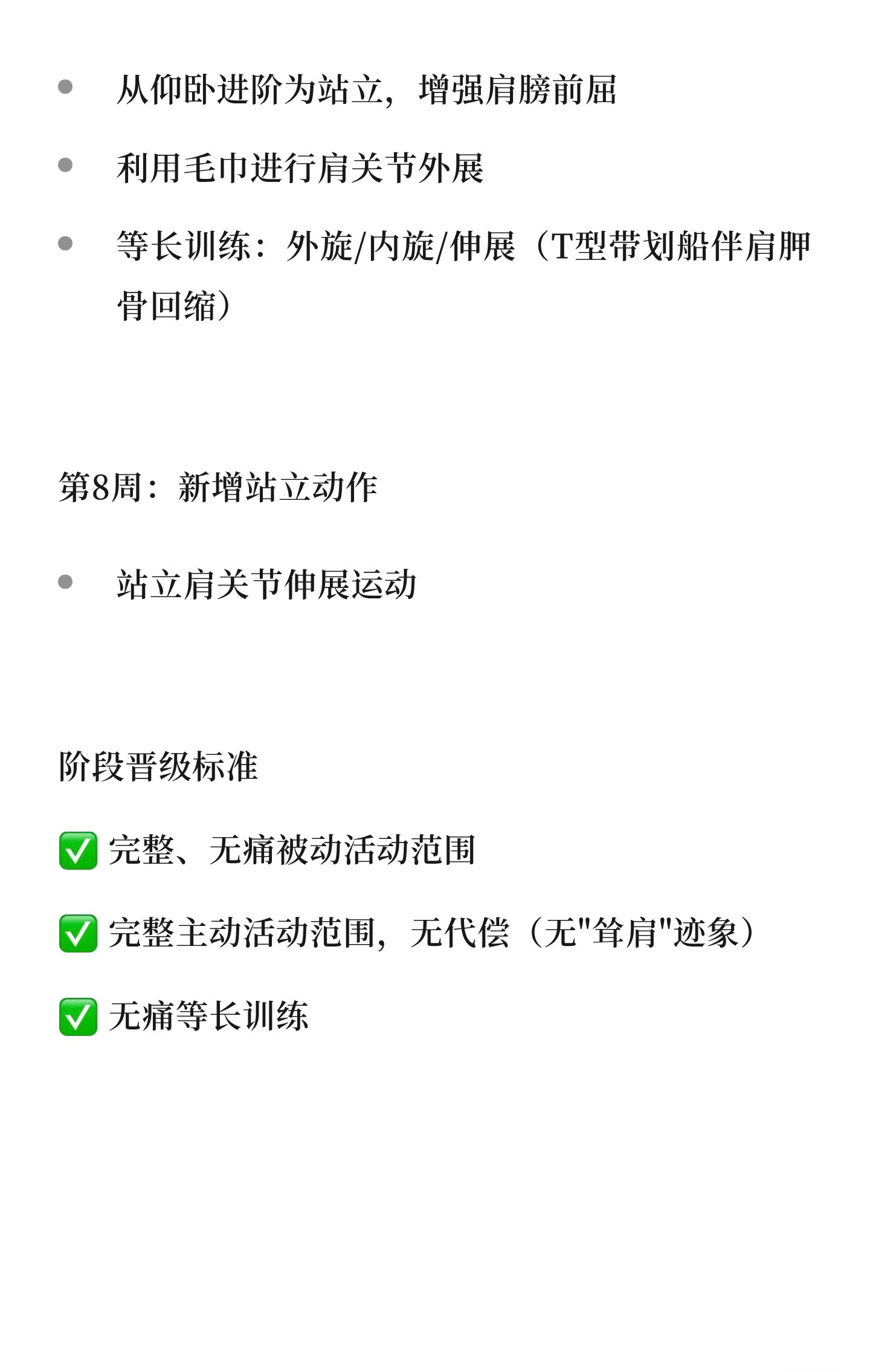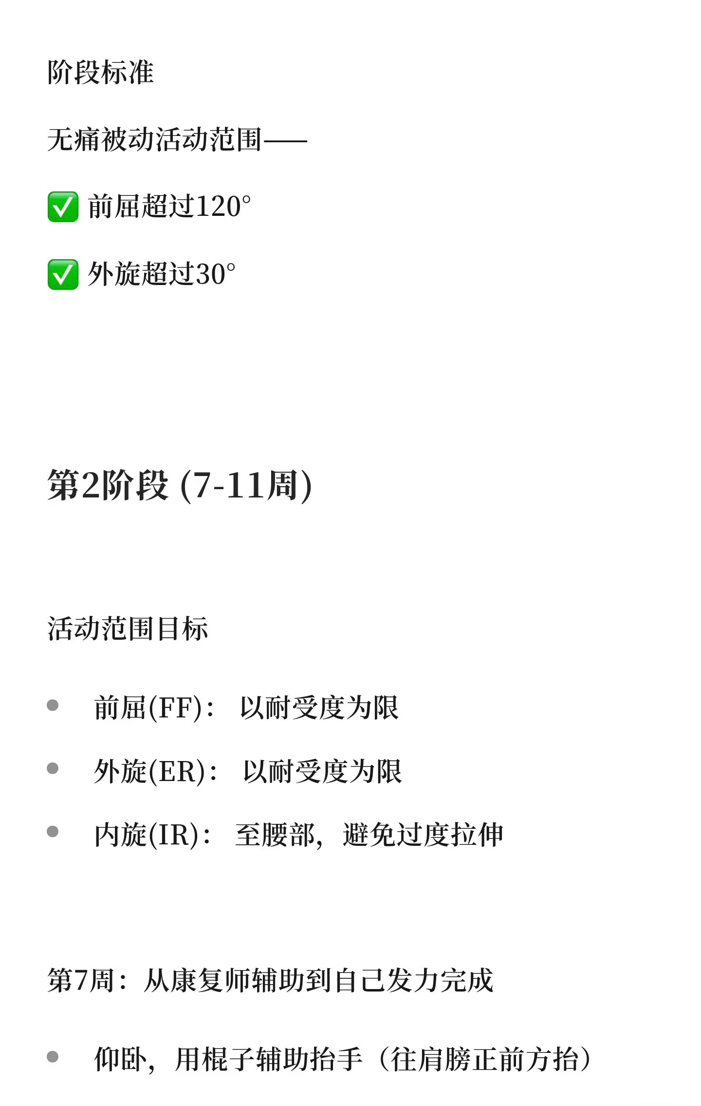 【第2阶段 7-11周】恢复完全被动活动范围、等长训练——从被动助力→主动助力→主动活动