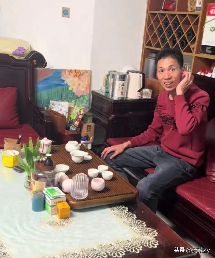 姐姐做好了粥端给他,他一口气喝了三碗!坐在沙发上和姐姐聊天,满脸轻松自在不像回去认亲时候那么拘谨!