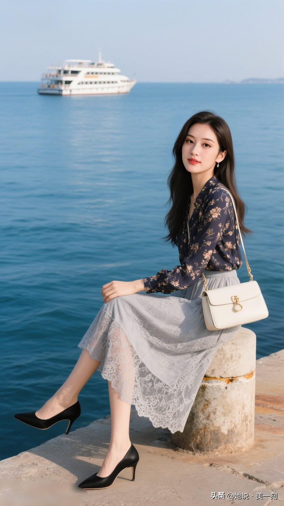 夕阳下的静谧时光,坐在湖边的她,享受着片刻的宁静与美好。优雅自信穿搭分享