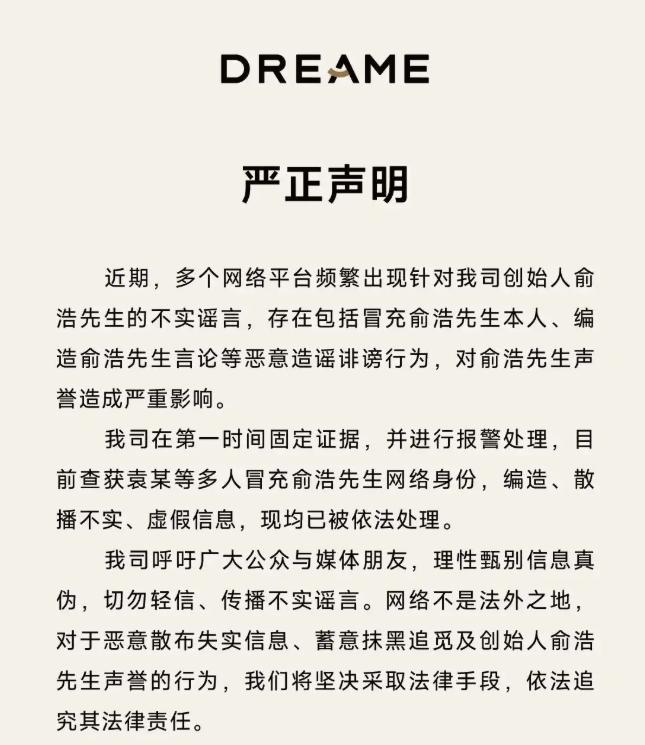 追觅科技:创始人俞浩遭恶意冒充 相关文章指出,近期袁某等多名人员因涉嫌冒充俞