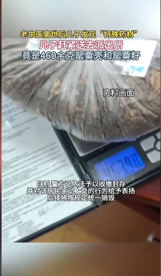“禁毒人人有责!”近日,湖北黄冈,一村民提着去世老中医父亲的遗物来到了派出所,警察打开一看,里面竟然是罂粟壳和罂粟籽,称了下有460多克重!警方调查后发现,这批罂粟壳并没有取得使用许可,属于非法持有!网友:这禁毒意识可以! 鸦片给中国带来了巨大的伤害,自林则徐虎门销烟开始,中国就走上了禁毒的道路,直到现在,哪怕近代的屈辱史已经成为过去,中国仍然没有放松对毒品的打击,而是无时无刻不在宣传反毒禁毒! 据媒体3月23日报道,事发当日,该村民提着一塑料袋东西,就上了派出所,交到了警察手里。他说这是自己父亲的遗物,打开一看,竟然全是罂粟壳和罂粟籽,称重后足有460克多。 男子说,他的父亲是一位退休的老中医,去世后,他在整理遗物时发现了这些,和药材放在一起。男子认出是罂粟后,不敢大意,赶紧收拾好上交了派出所。 警察调查后发现,这一批罂粟并没有取得麻醉药品经营使用许可,不属于合规渠道持有的药用罂粟壳,换而言之,这就是非法持有的“毒品”! 警方对该男子主动上交的行为进行了表扬,并将这一批罂粟壳罂粟籽收缴封存了起来,等待后期统一进行销毁处理。 网友看后表示,该村民做的很对,哪怕自己的父亲是医生,哪怕他有合法持有的资格,这些也应该交给警方进行销毁!禁毒,不应该因为和自己的亲戚牵扯上了就逃避,应该时时刻刻绷紧这根弦,哪怕是大义灭亲,也是所有人的英雄! 信息来源:《老中医离世后儿子上交460g罂粟壳和罂粟籽(三农频道)》半岛晨报