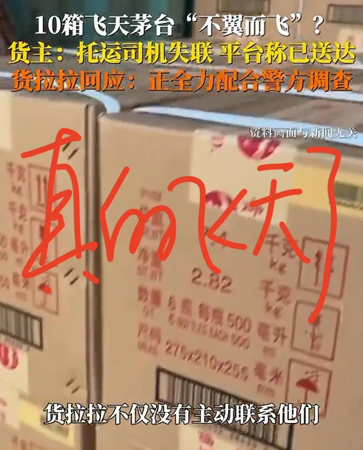 飞天茅台真的飞天了! 胆大包天!货拉拉司机接单发10箱茅台,半路直接失联,十几万货物凭空消失! 这司机也太肥了!但你能全身而退吗? 更让人气愤的是,货主紧急联系货拉拉平台,客服先是离谱报错状态,谎称货物已送达,被拆穿后才承认是操作失误;货主要求提供司机真实身份信息,平台又拿隐私当借口拒不提供,全程推诿拖沓,毫无应急处理能力! 货主欲哭无泪,当即报警,目前警方已立案,全力追查涉事司机,估计很快就会有结果。