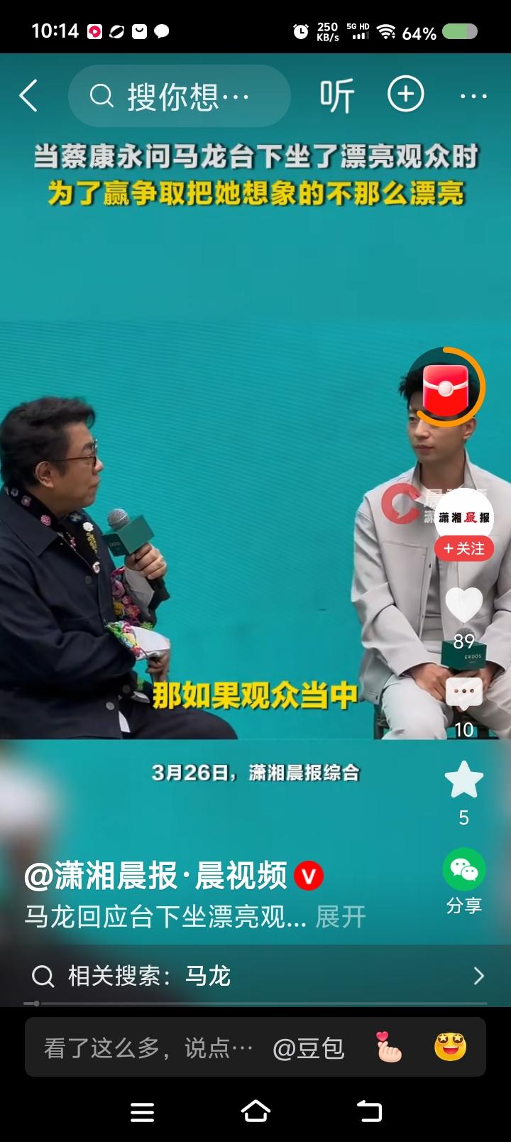 蔡康永,这么不专业吗?—— 采访中,蔡康永问马龙:“比赛时,台下有个很漂亮的人,你会紧张吗?” “观众在高处,我们可能注意不到。如果注意到了,这场球可能会输。” “她就坐在你对手的脸的旁边。”主持人不放弃。 “那你争取把她想象得不那么漂亮。” 点评: 有网友说主持人问这个太无聊。我认为起码显得主持人不专业。 生活类话题可以问,但按常识判断,会存在这类问题么? 这是马龙!参加的不是台湾省台北市夕阳红杯乒乓球联赛。任何专业运动员工作时会想入非非吗?美女?美食?比赛完去哪玩?明天天气咋样?我妈身体怎么样了?伊拉克战争进展到哪一步了?高圆圆和小方方那部戏开拍了么?上个月奖金又少了350元…… 是这样的么?你干嘛来了? 我觉得马龙可以反问主持人:“你做节目时,碰上了令你心动的嘉宾,你会想方设法关注对方吗?想过留联系方式吗?”