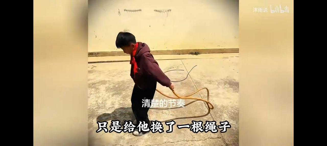 为这位老师点赞—— 网上视频:一个男孩学跳绳。老师陪他练习,并给他换了一条粗绳子。慢慢地,0个,1个,两个,3个……能跳几十个了。老师发现此男孩课下偷偷练习时,写下了鼓励的话。 此视频传到外网,外国网友也深受感动。 点评: 为老师点赞! 家长们也要学会这一点:陪伴与鼓励。不要攀比。快与慢,多与少,不是一时能衡量的。尽了自己的力,就是他的圆满。他的节奏,你干预不了。