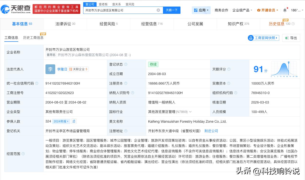 【万岁山武侠城曾被罚30万 万岁山武侠城多次因借贷纠纷被起诉】游客因拍照设备太专业被景区驱赶 据媒体报道,近日,河南开封万岁山武侠城景区一游客用专业设备帮妻子拍照,被景区以"禁止商拍"为由驱赶,相关话题引发热议。 天眼查App显示,万岁山武侠城关联公司开封市万岁山游览区有限公司成立于2004年8月,法定代表人为李隆日,注册资本约1.67亿人民币,经营范围包括游览景区管理、旅游业务、住宿服务等。股东信息显示,该公司由开封市文化旅游股份有限公司、开封仁山文化发展有限责任公司等共同持股。经营风险信息显示,2024年4月,该公司曾因违反《中华人民共和国文物保护法》,被开封市文化广电和旅游局罚款30万元。法律诉讼信息显示,该公司曾因民间借贷纠纷,生命权、健康权、身体权纠纷等被起诉。 天眼查信息: