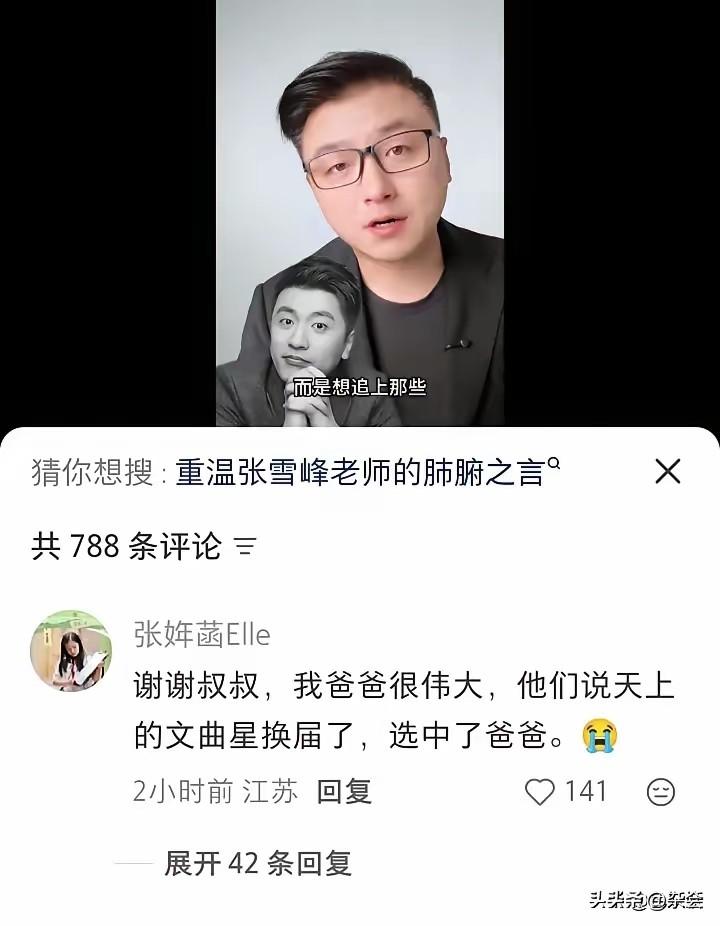 “谢谢叔叔,我爸爸很伟大,天上的文曲星换届了,选中了爸爸。”