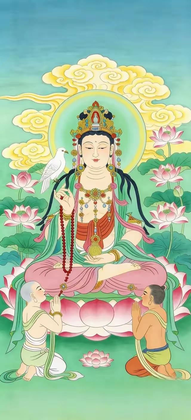 手机壁纸~莲台座上,宝相庄严,祥云缭绕间尽是慈悲与安宁,每一笔都绘着东方信仰里的