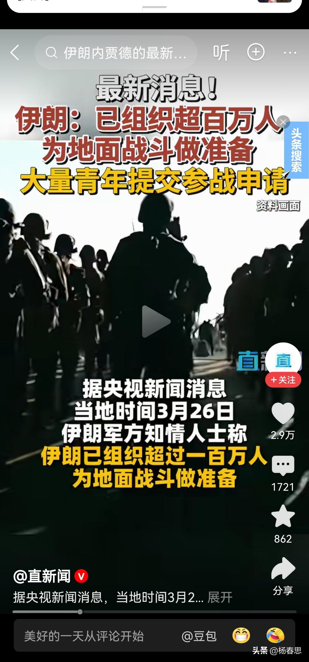 越来越多的美国大兵已经醒悟了,不再为以色列国家利益而战,可以看出美国航母出事故可能是他们内部人自己搞的,不想参战,远离战区他们是自保,美国大兵更多也是贫穷人家的子弟,像美国权贵子弟都没有参战,特朗普几个儿子都没上场是吧?特别是他的小儿子已。满18周岁,美国网民叫他去他都不去,他的女儿和女婿,他的儿子都没个上场。他们只是想让普通人为他们卖命发战争横财。与此同时,伊朗却有百万雄兵动员起来,美国大兵是被动参战,士气低落。而伊朗军人却是保家卫国参战,气势高昂。高判立下。