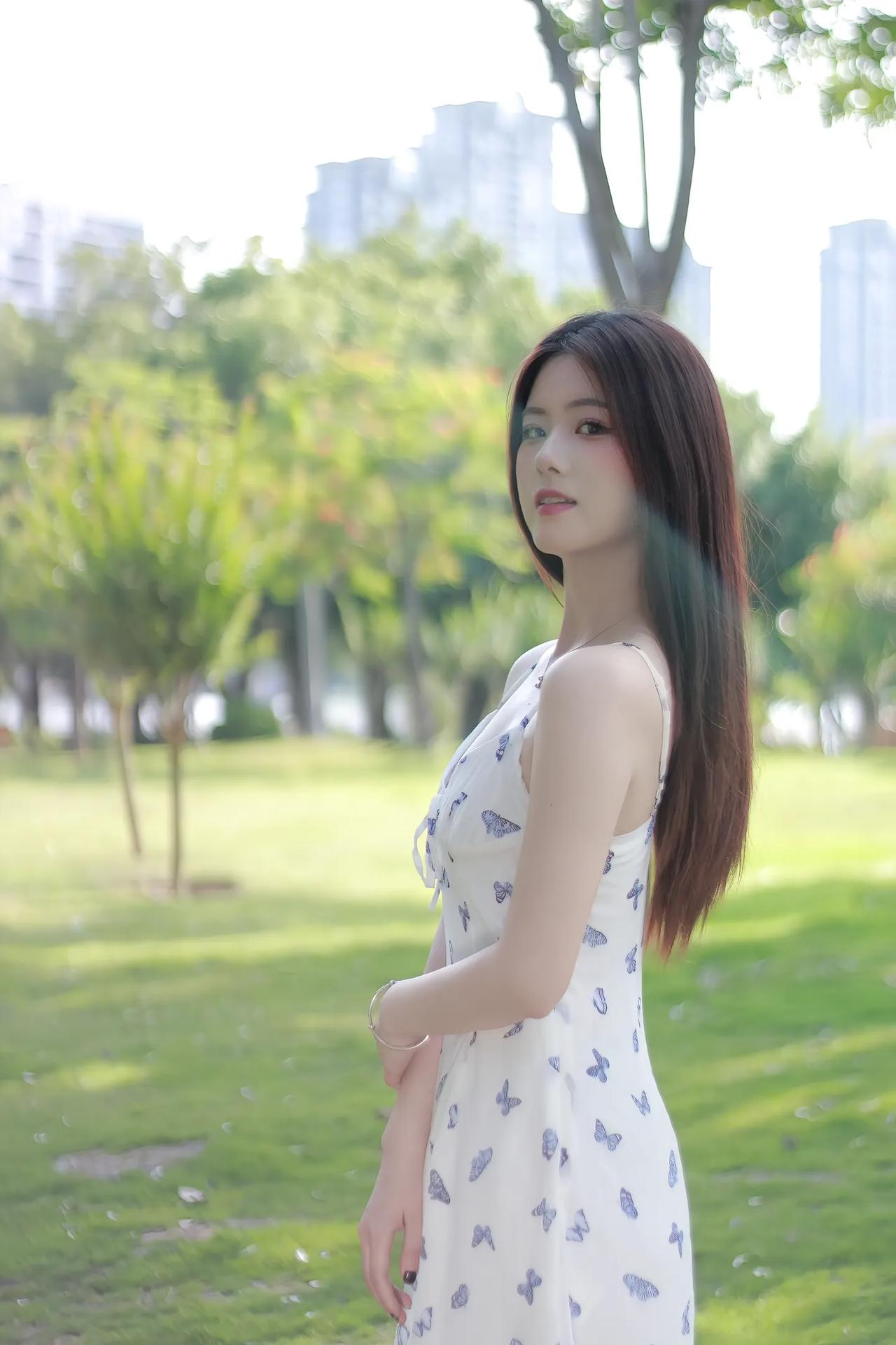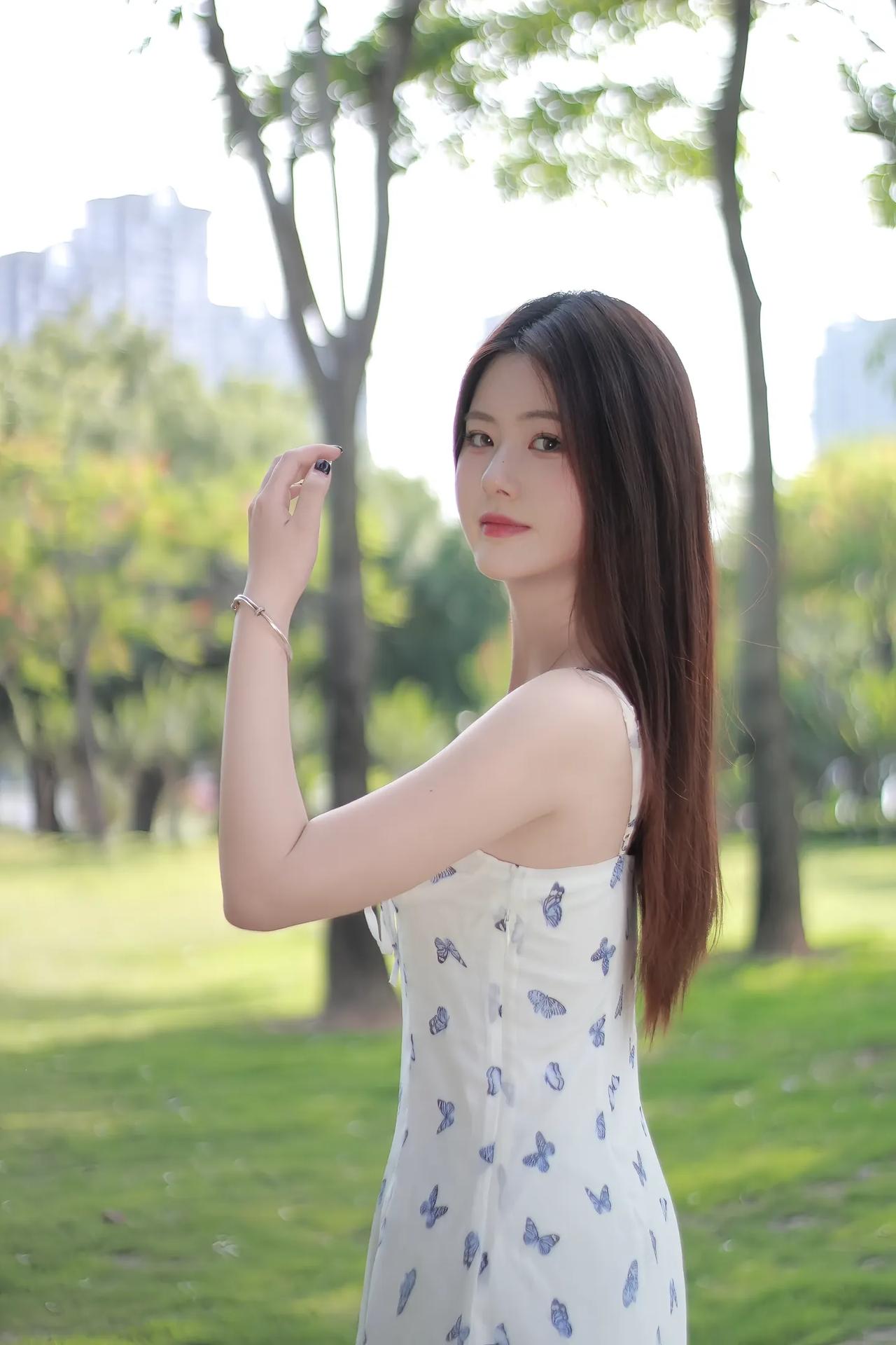 绿树荫中人影斜,轻纱拂面意无涯。