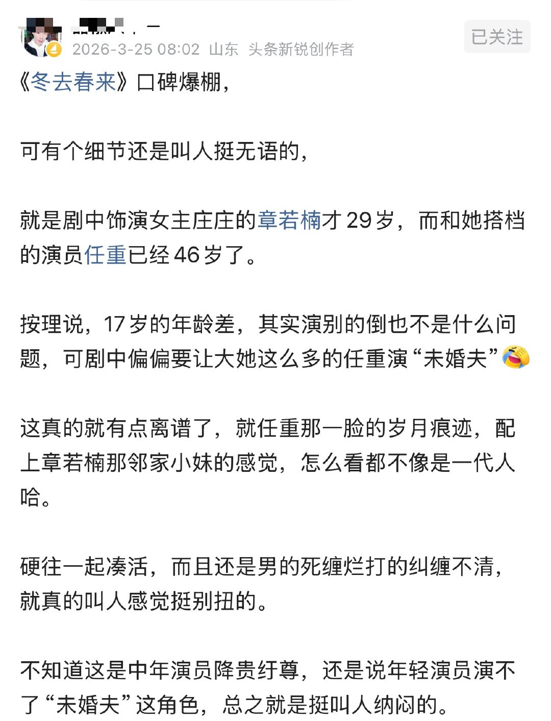 《冬去春来》口碑爆棚,可有个细节还是叫人挺无语的
