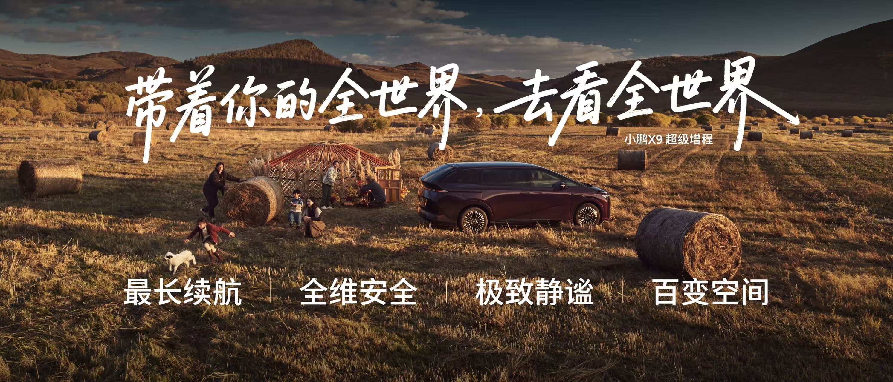 去年X9超级增程发布时,小鹏X9说:带着你的全世界,去看全世界。