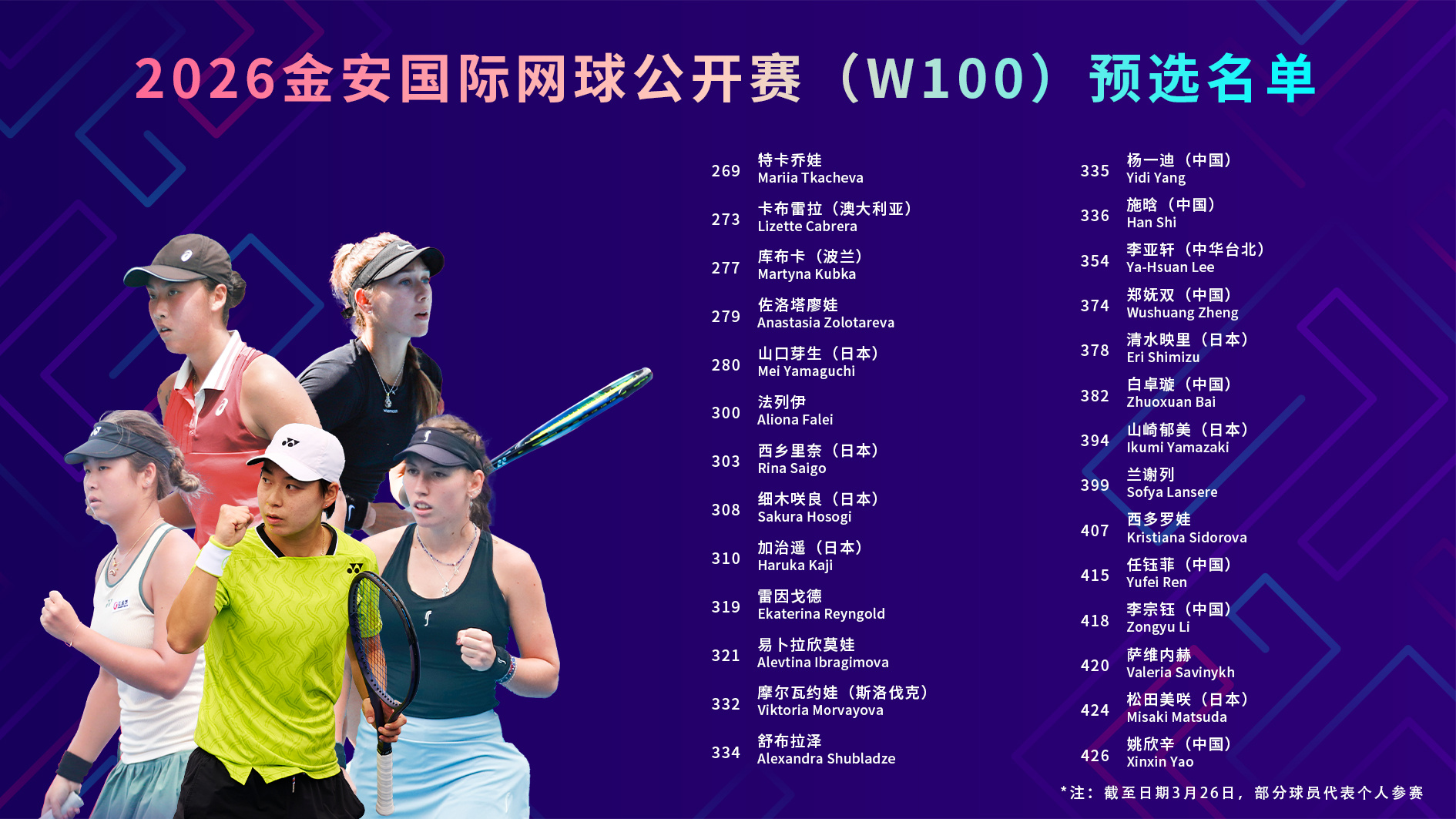 2026金安国际网球公开赛 参赛名单(W100)公布,中国军团豪华阵容出战:朱琳🇨🇳、王曦雨🇨🇳、郭涵煜🇨🇳、马烨欣🇨🇳、尤晓迪🇨🇳、田方然🇨🇳入围正赛